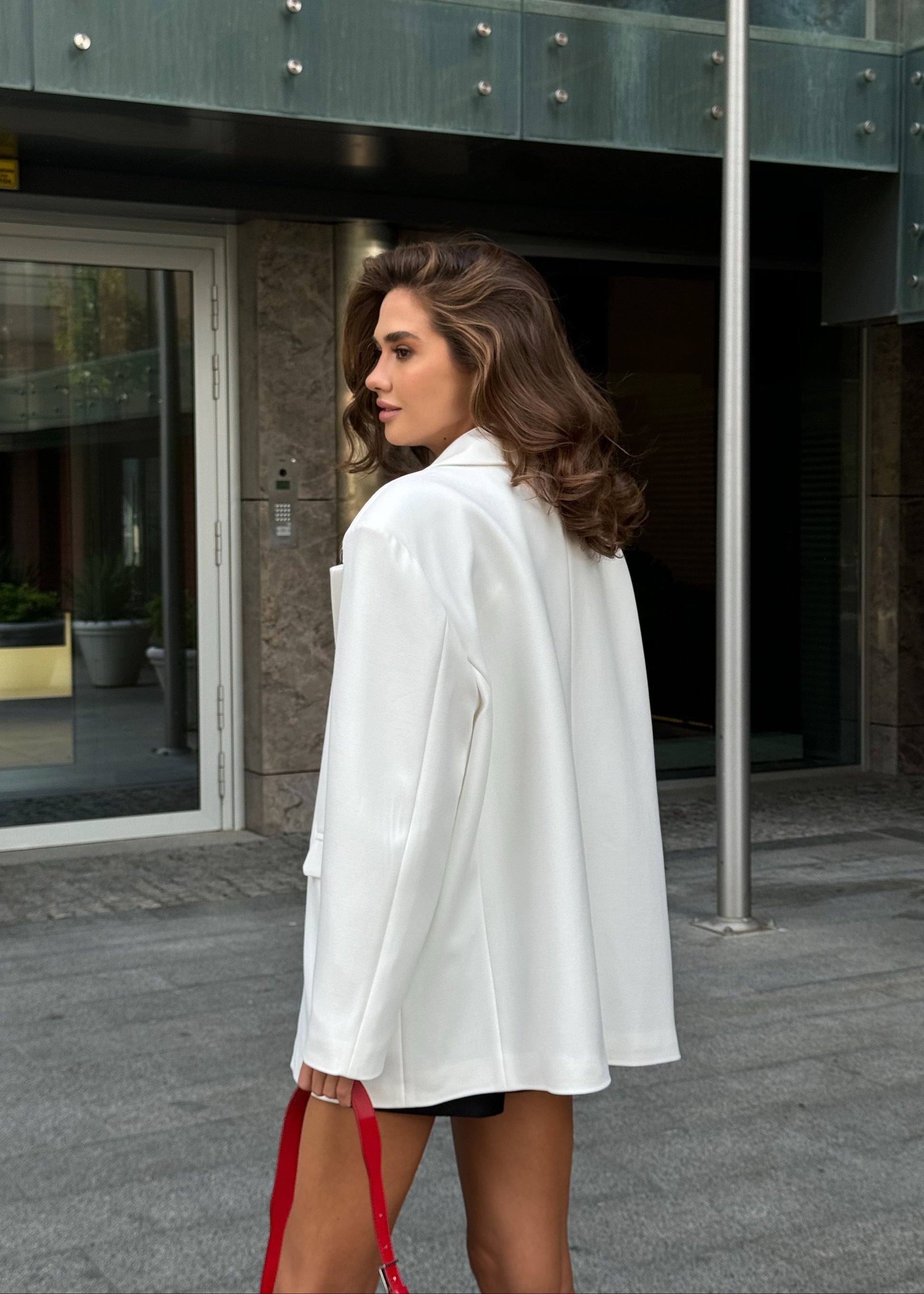 Базовий oversize-жакет, який стане основою стильного гардеробу. Преміальна костюмна тканина, подовжений крій, класичний відкладний комір з лацканами і кишені з клапанами. Двобортна застібка додає лаконічності та завершеності образу.