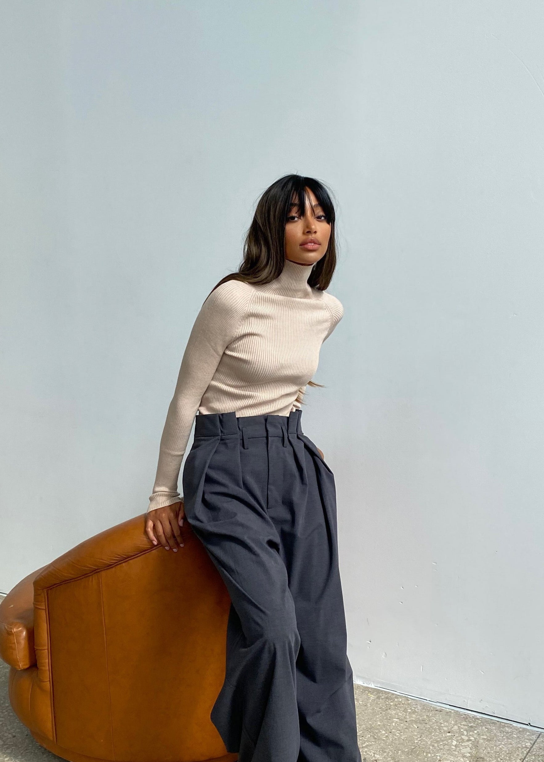 Ідеальний елемент гардеробу, який легко поєднується як із класичними жакетами, так і з розслабленими oversize-костюмами. Завдяки гарній розтяжності й безшовному крою, гольф комфортно сідає по фігурі, підкреслюючи силует і залишаючись зручним упродовж дня.