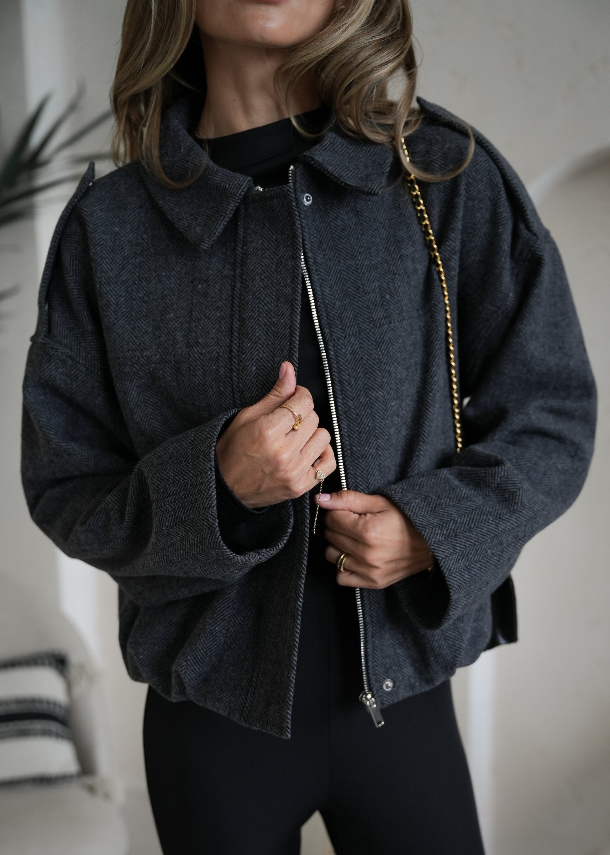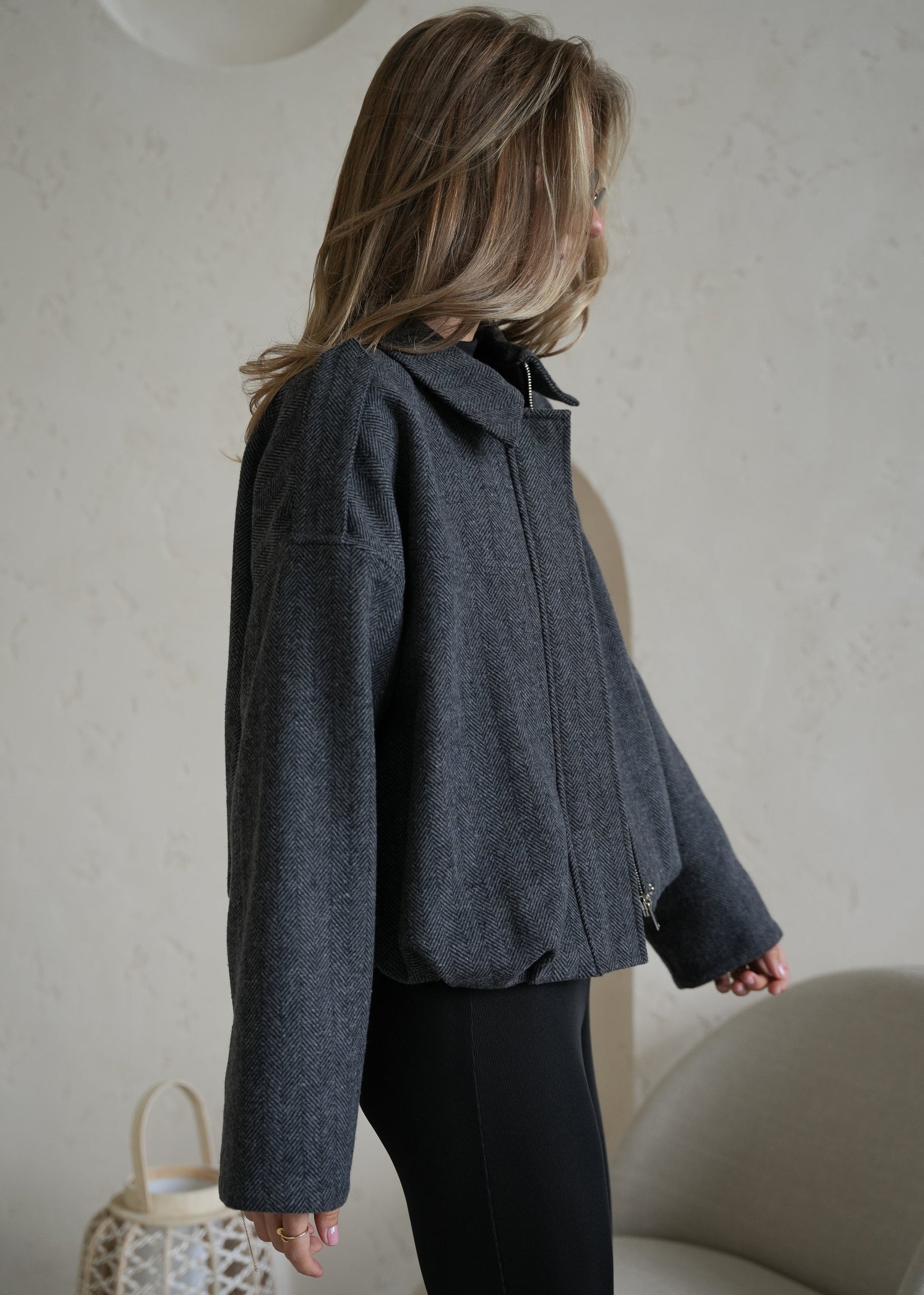 Сучасна інтерпретація класики. Бомбер із м’якої вовняної тканини поєднує комфорт і стиль. Завдяки вільному крою легко інтегрується як у повсякденні, так і в більш вишукані образи.
