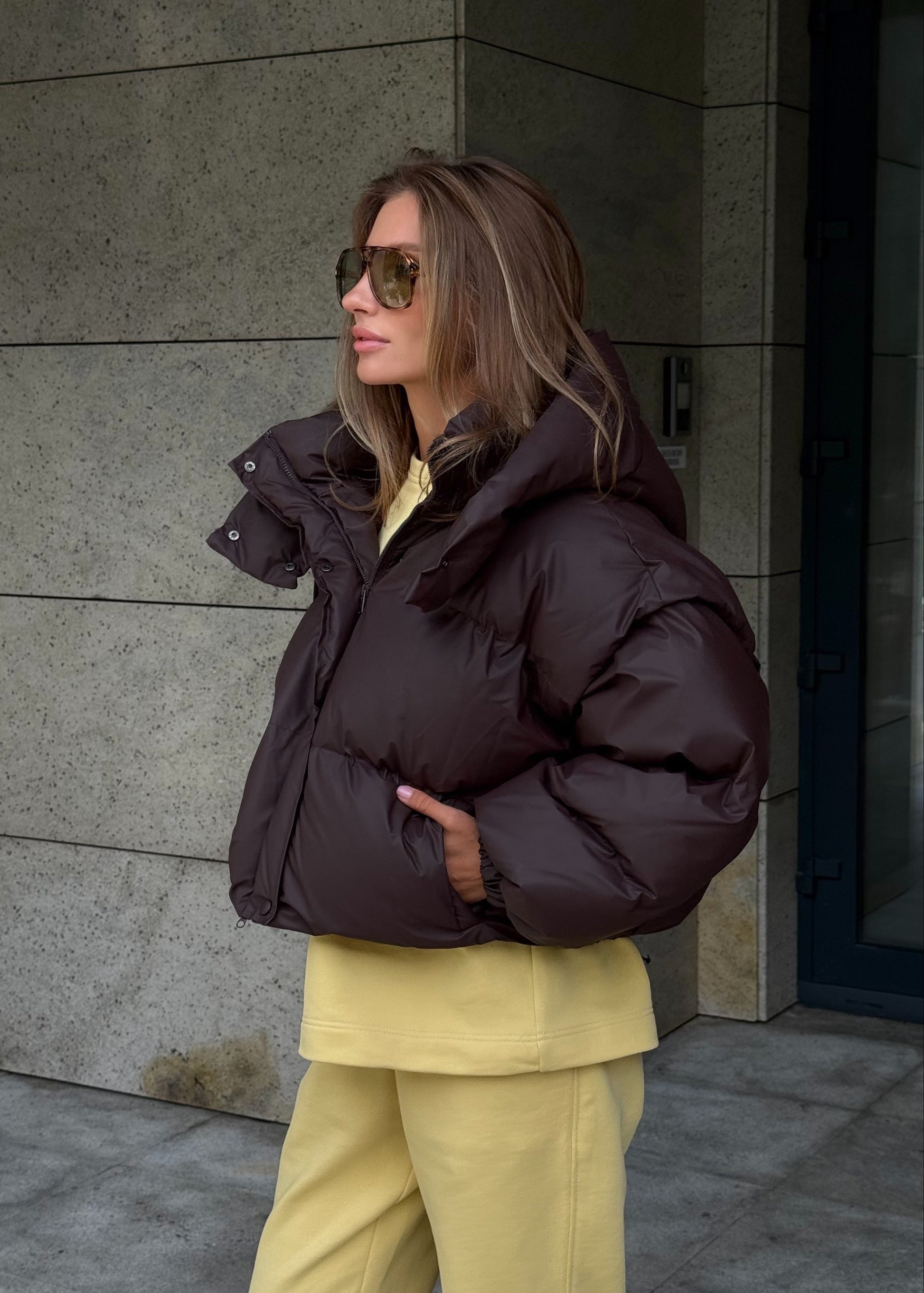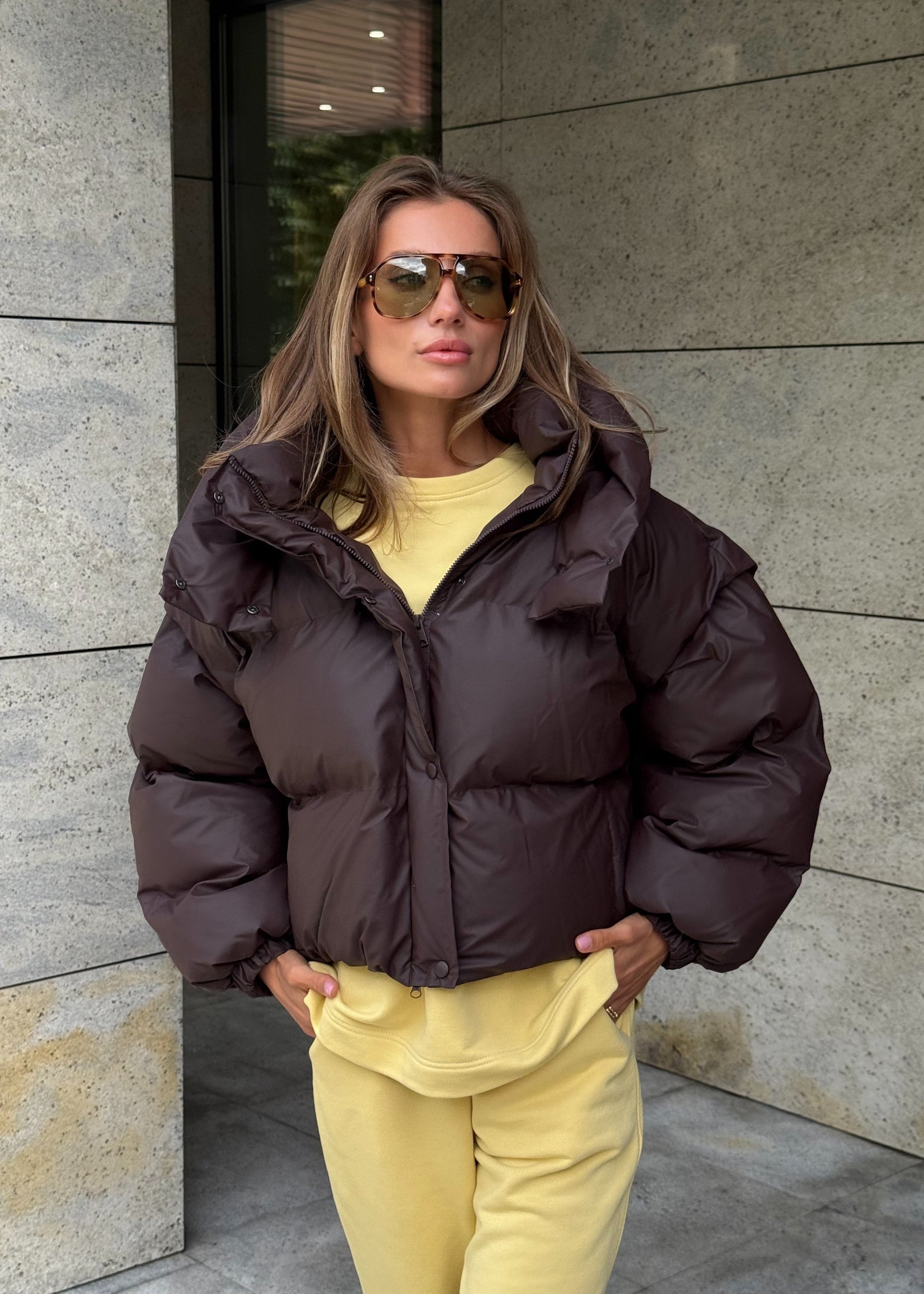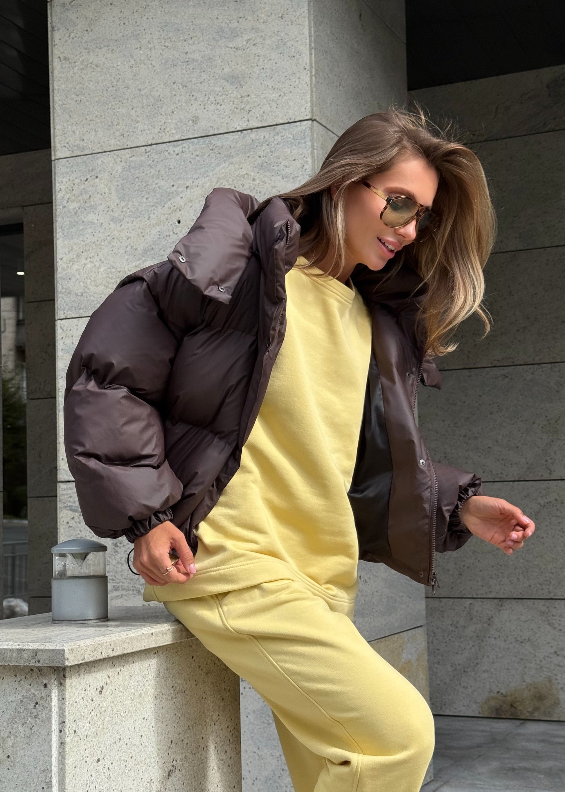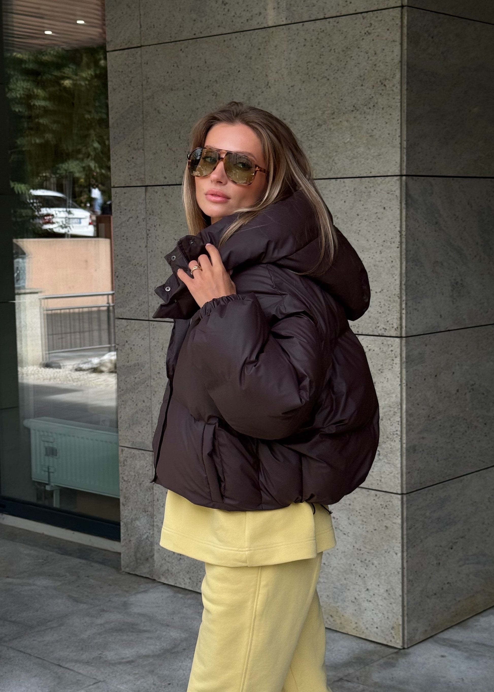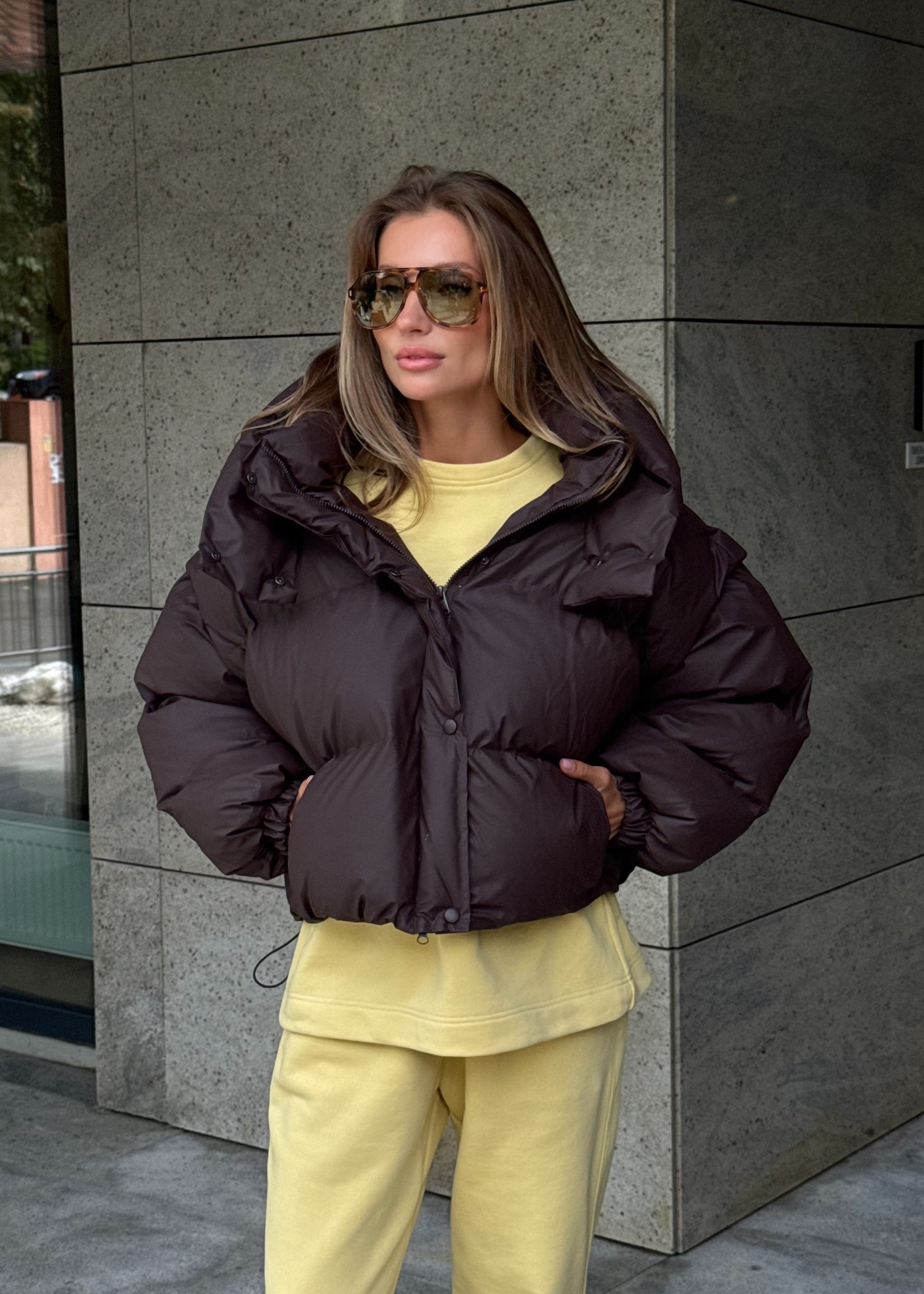 Модель має дві функціональні кишені, куліску по низу для регулювання об’єму та наповнювач еко-пух, який забезпечує легкість, тепло та збереження форми.
