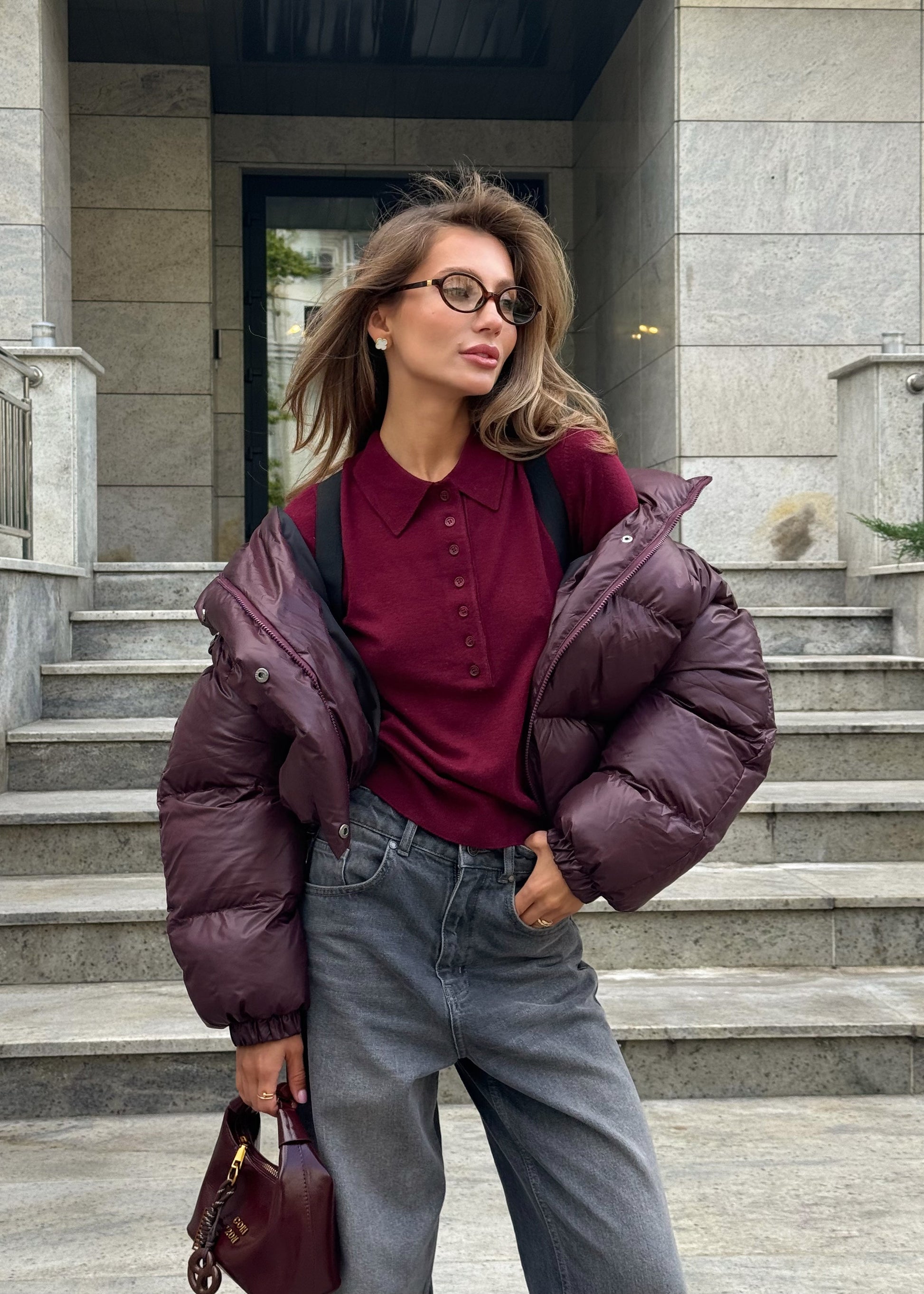 Вкорочений пуфер в кольорі бургурнді