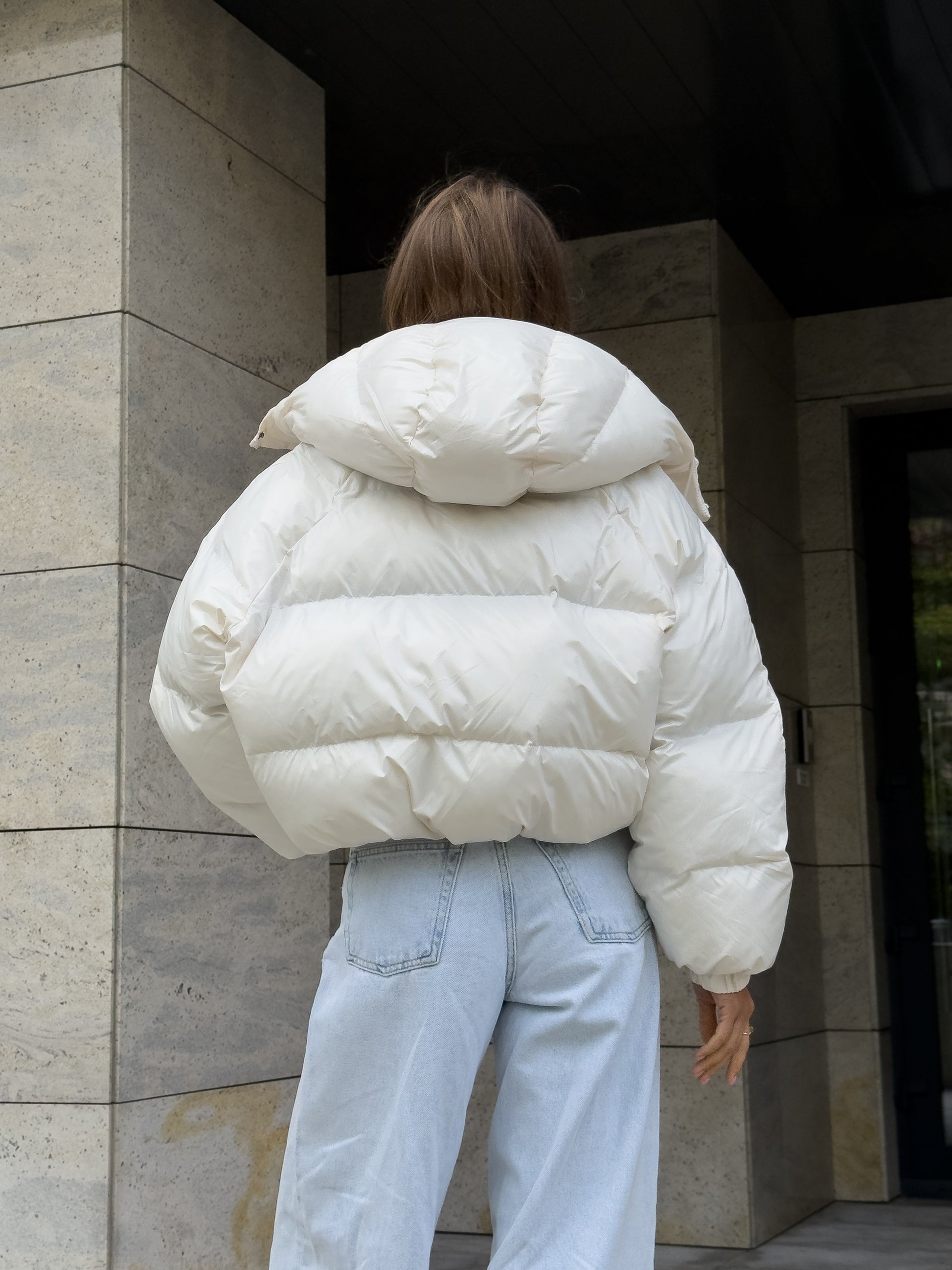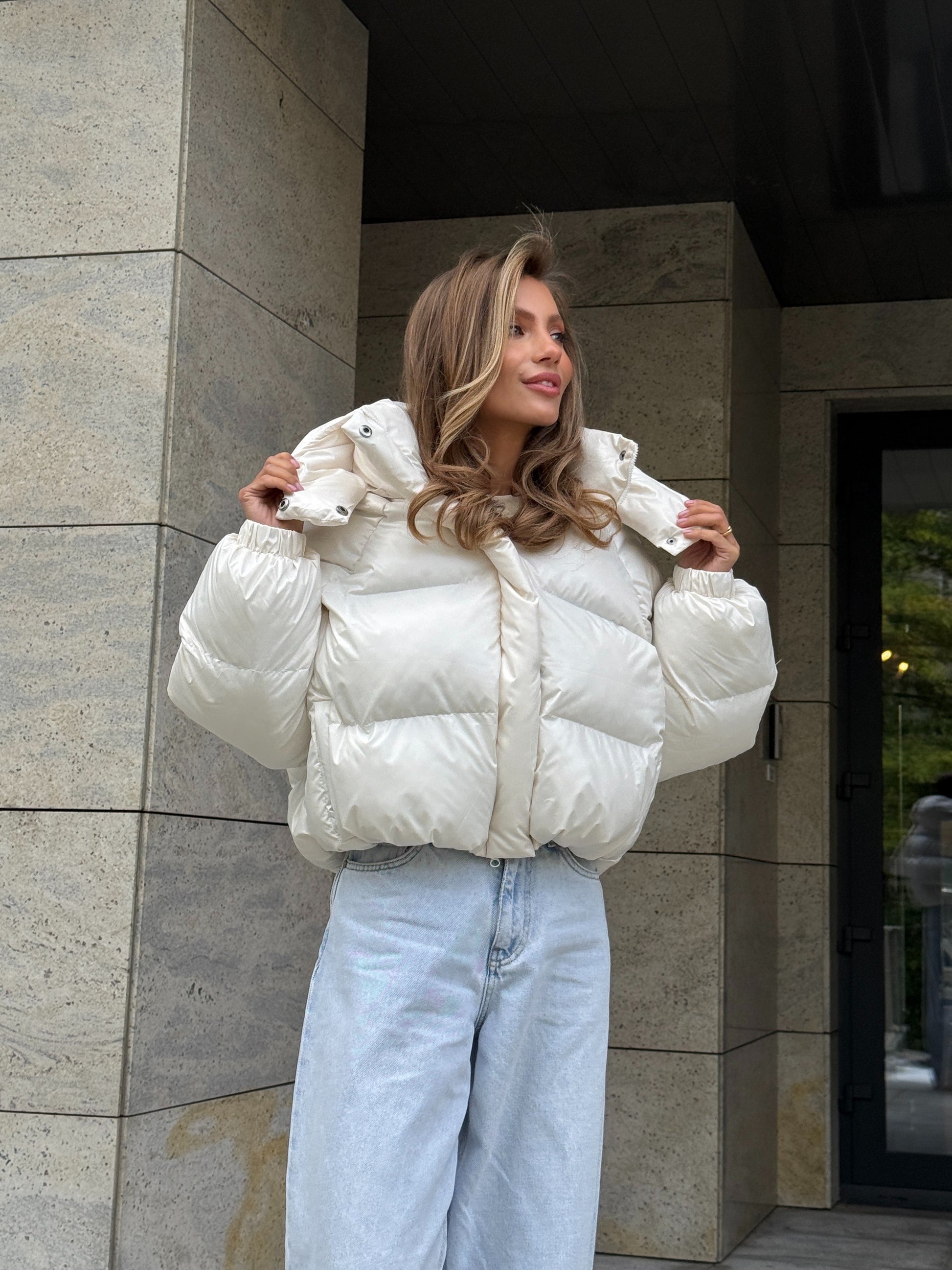 Сучасна модель пуферу з біопухом, яка поєднує комфорт і функціональність. Виконаний із якісної водовідштовхувальної глянцевої плащівки на мембранній основі. Має застібку на блискавці та кнопках, регулюється знизу гумкою для кращої посадки. Два зовнішні кишені забезпечують практичність. Знімний капюшон на кнопках і манжети-резинки на рукавах захищають від холоду та вітру.