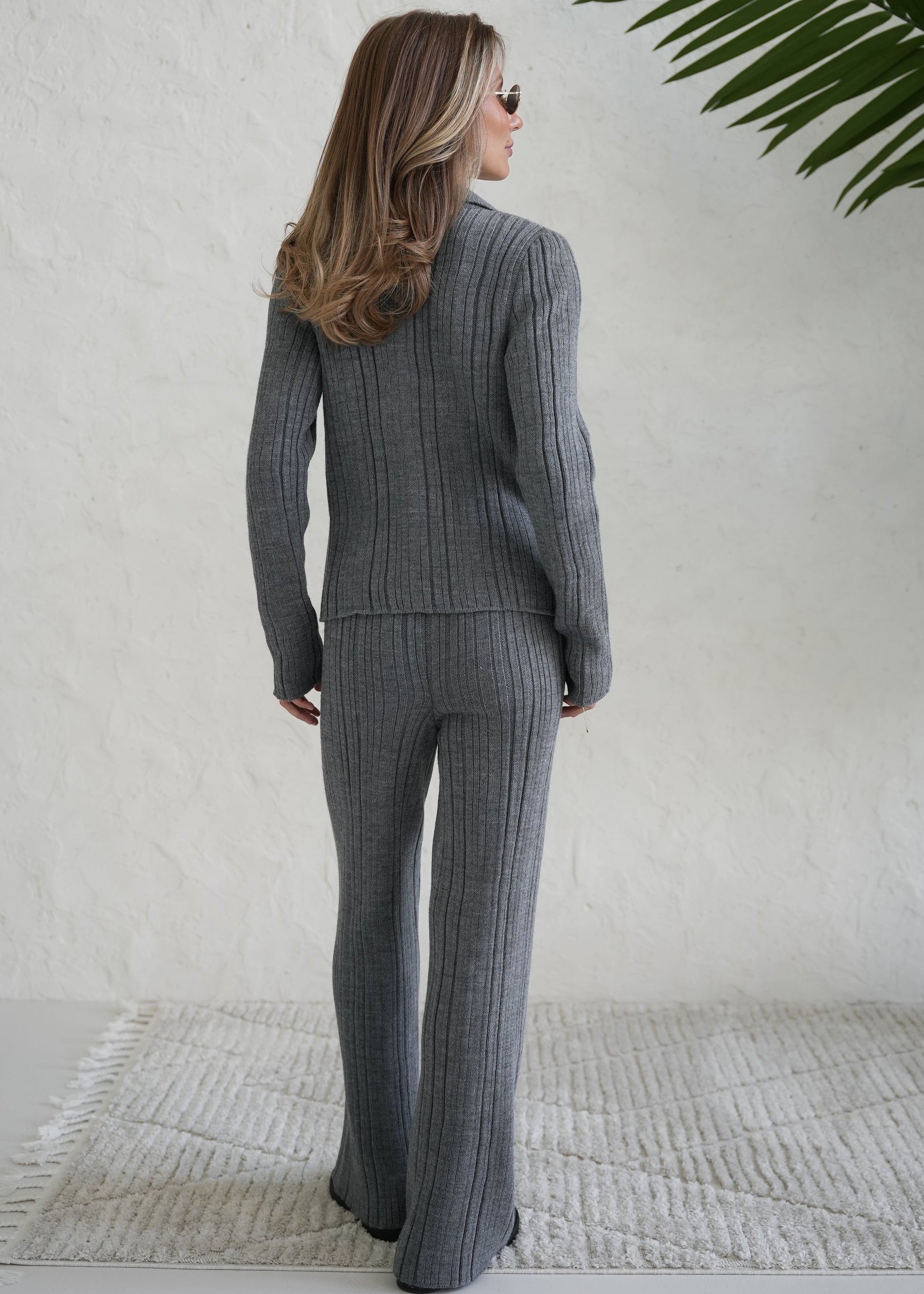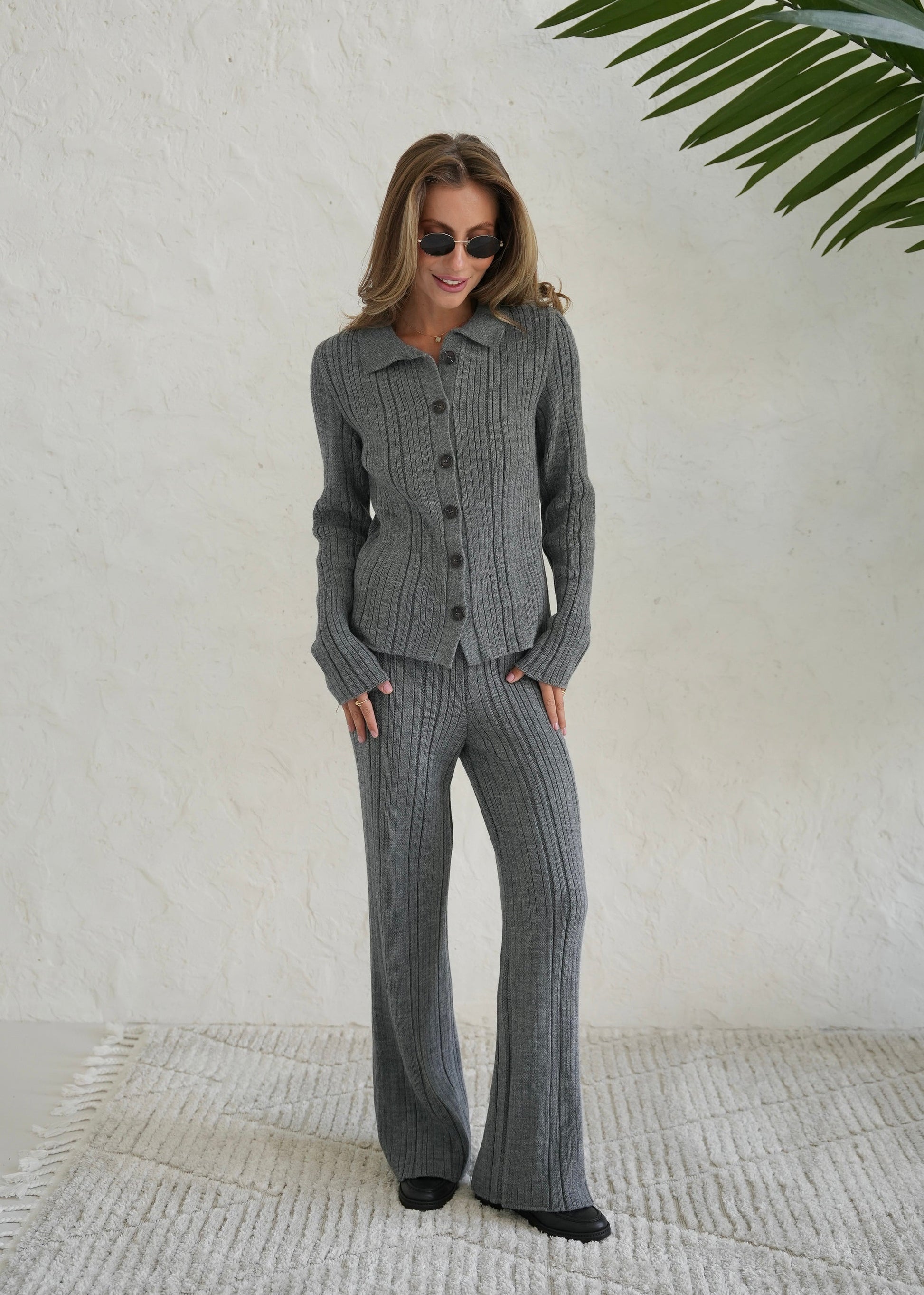 Стильний в'язаний комплект: джемпер з V-подібним вирізом та довгими рукавами у поєднанні із шортами вільного крою. Фактурний візерунок «коси» надає образу затишку та легку елегантність, а м'який трикотаж забезпечує комфорт у носінні.