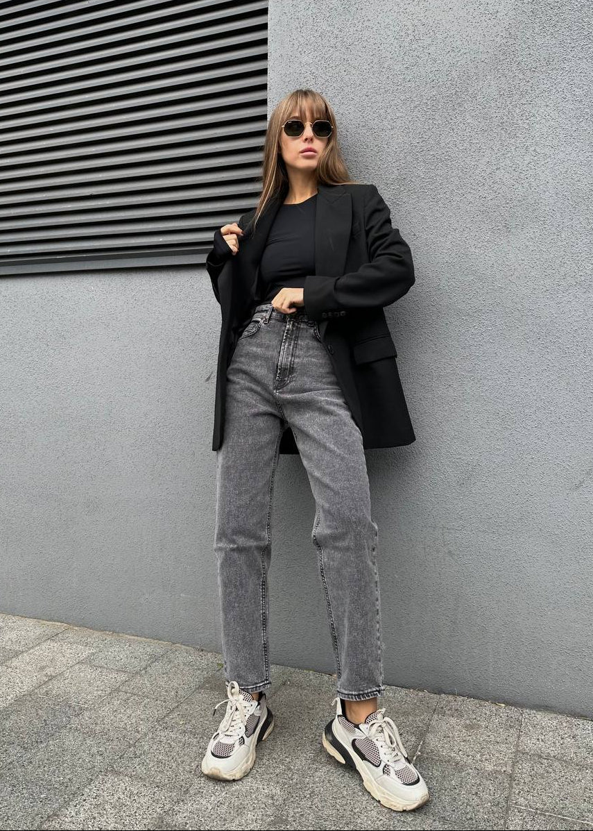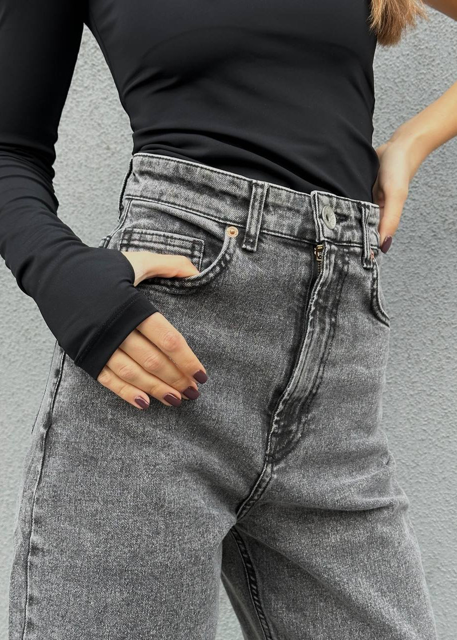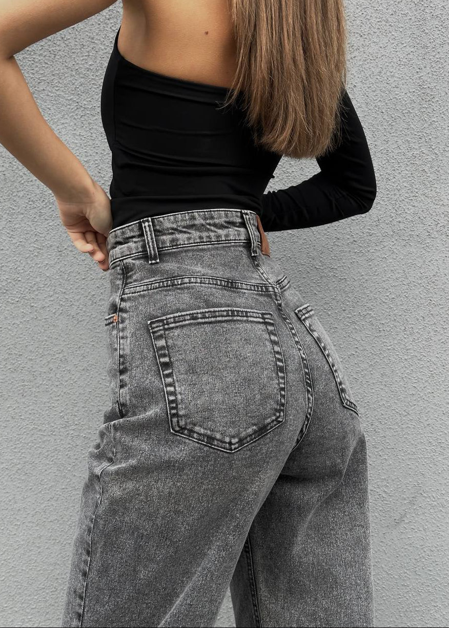 Класика, яка ніколи не виходить з моди. Джинси Mom Fit — це поєднання комфорту та стилю. Вони мають високу посадку, що підкреслює талію, і вільний крій у стегнах із легким звуженням донизу. Такий фасон створює лаконічний силует і пасує до будь-якої фігури. Модель виготовлена з щільного деніму, який добре тримає форму, але водночас м’який і приємний у носінні.