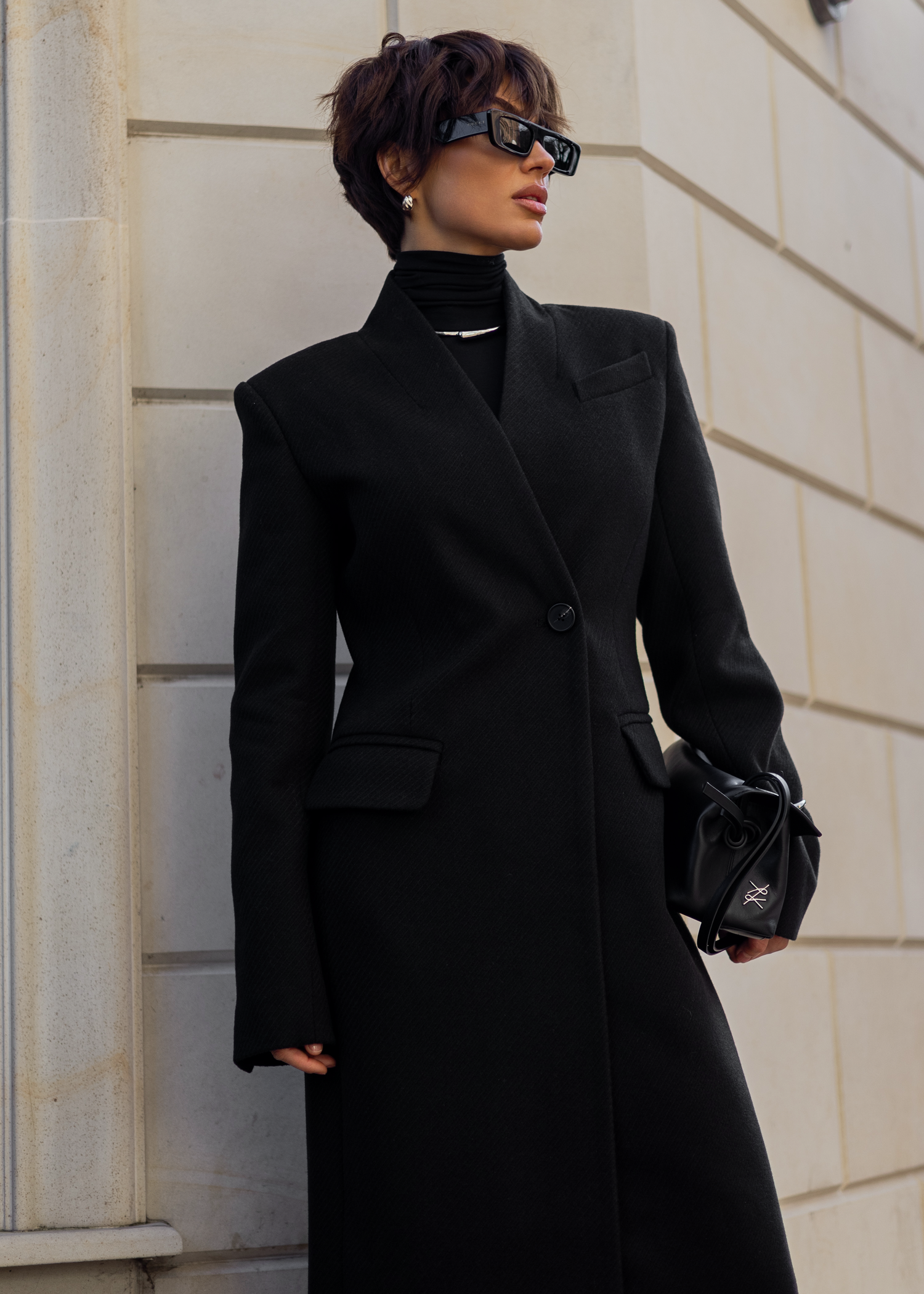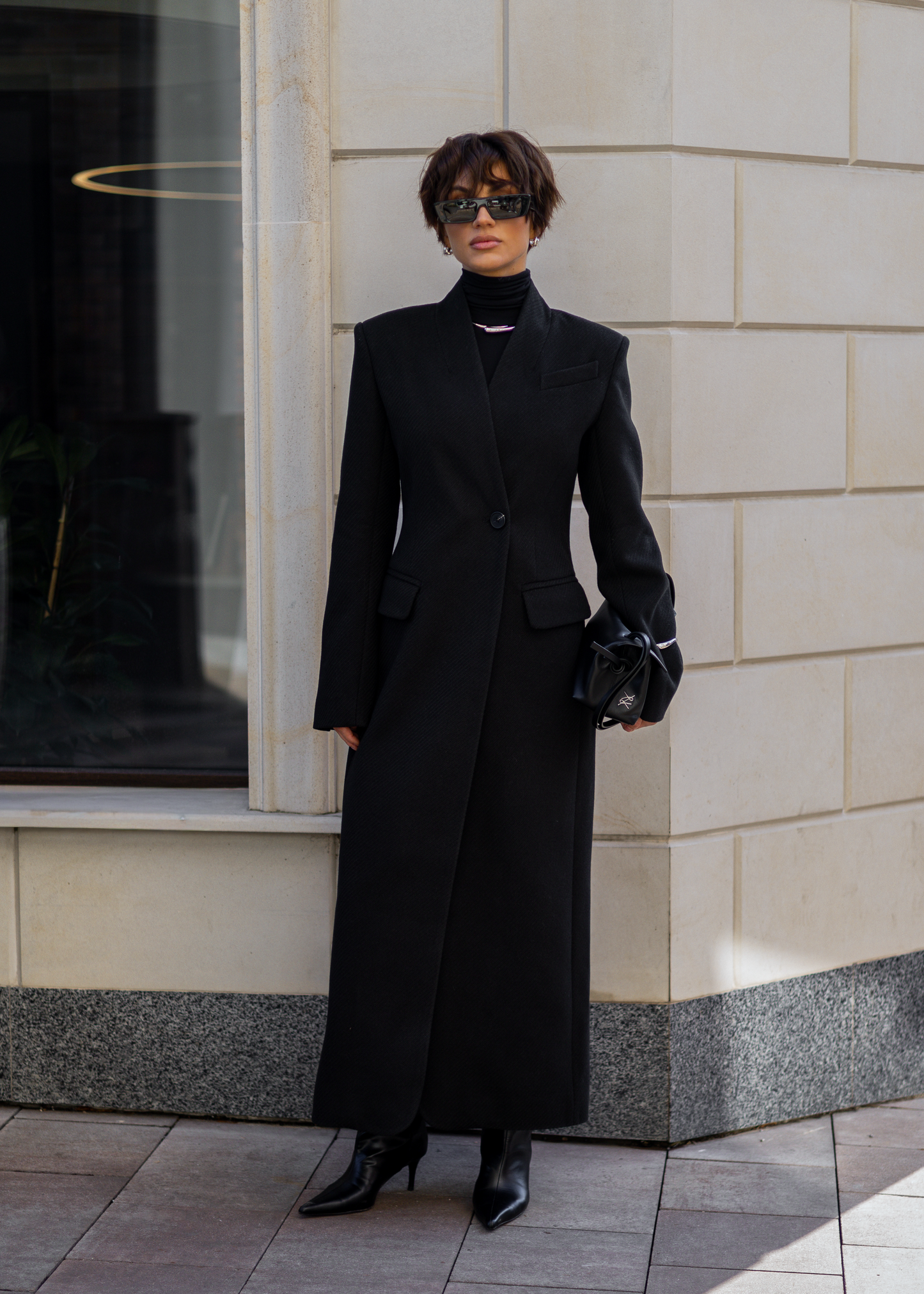 Подовжене пальто з високоякісним силіконізованим утеплювачем щільністю 150 г/м², який має відмінні терморегулюючі властивості, не вбирає вологу та зберігає форму під час носіння. М’яка кашемірова тканина преміальної якості формує ідеальний силует, а стриманий дизайн із витонченими лацканами підкреслює лаконічність стилю. Завдяки віскозній підкладці пальто дарує комфорт навіть у багатошарових комбінаціях. Це універсальна річ, яка гармонійно поєднується як з класикою, так і з кежуал-елементами.