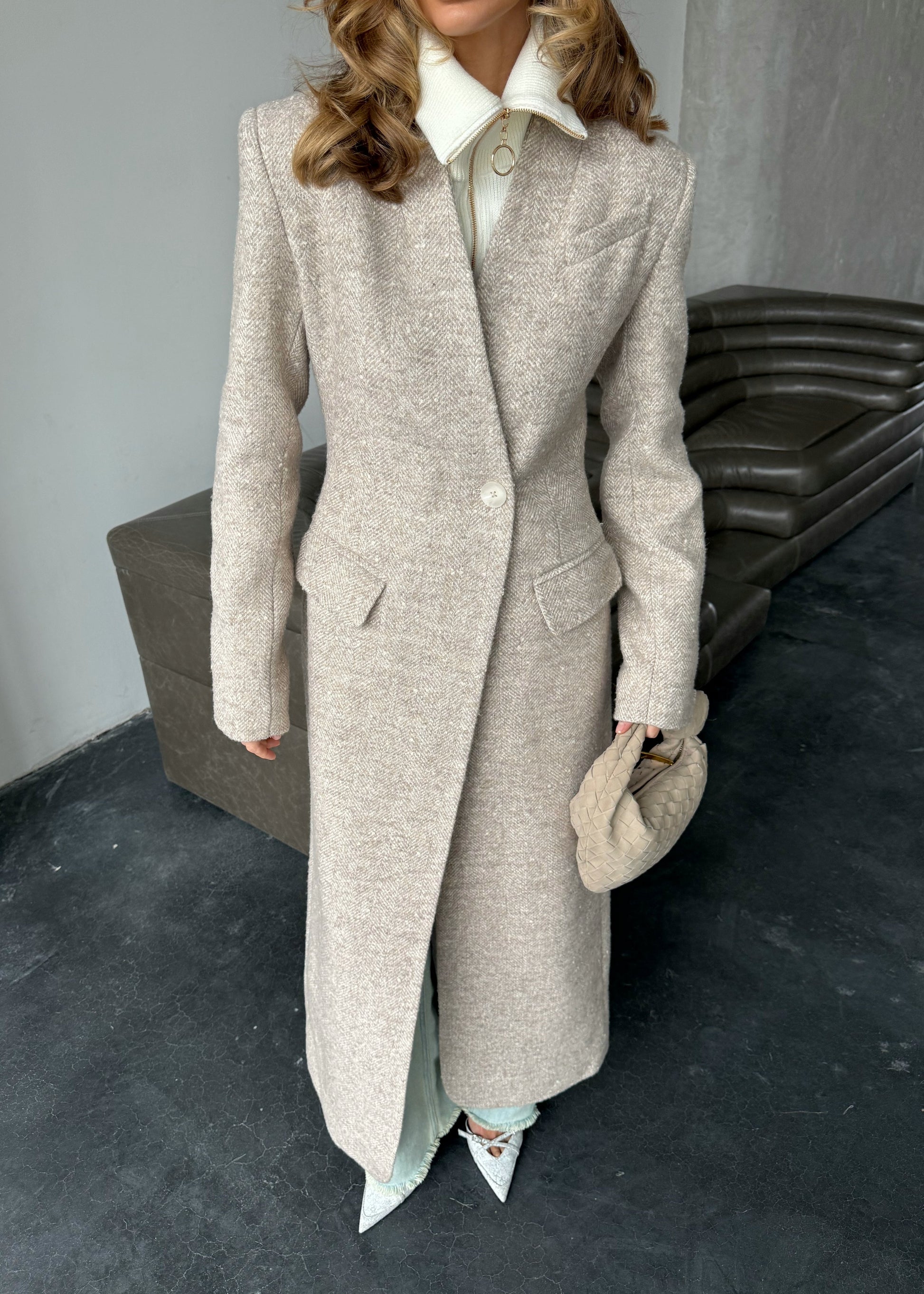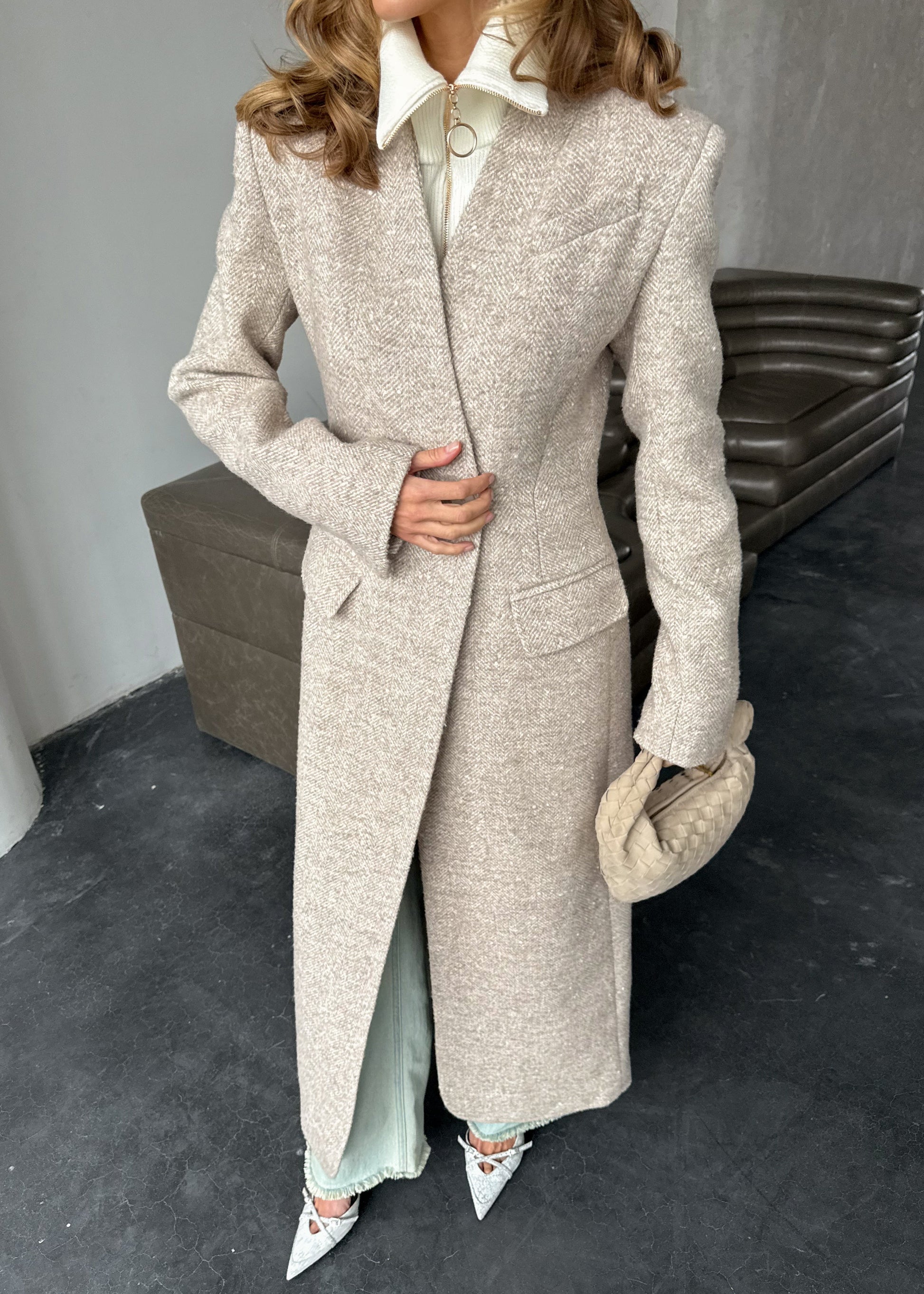 Подовжене пальто з високоякісним силіконізованим утеплювачем щільністю 150 г/м², який має відмінні терморегулюючі властивості, не вбирає вологу та зберігає форму під час носіння. М’яка кашемірова тканина преміальної якості формує ідеальний силует, а стриманий дизайн із витонченими лацканами підкреслює лаконічність стилю. Завдяки віскозній підкладці пальто дарує комфорт навіть у багатошарових комбінаціях. Це універсальна річ, яка гармонійно поєднується як з класикою, так і з кежуал-елементами.