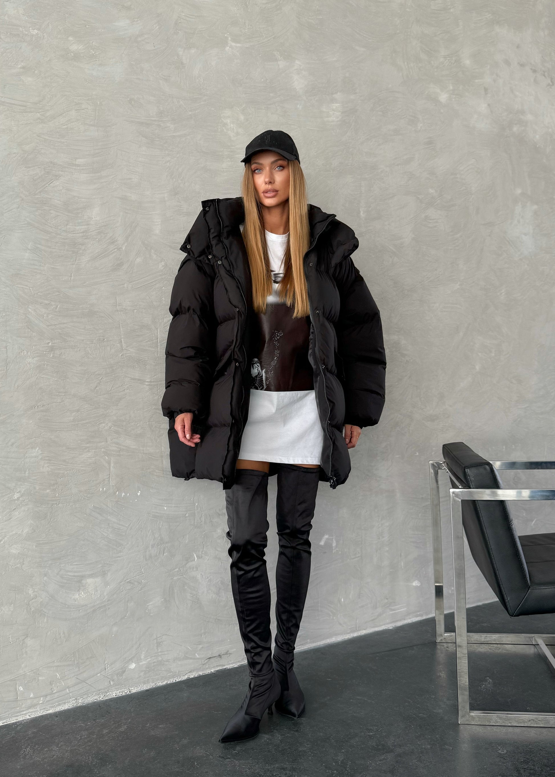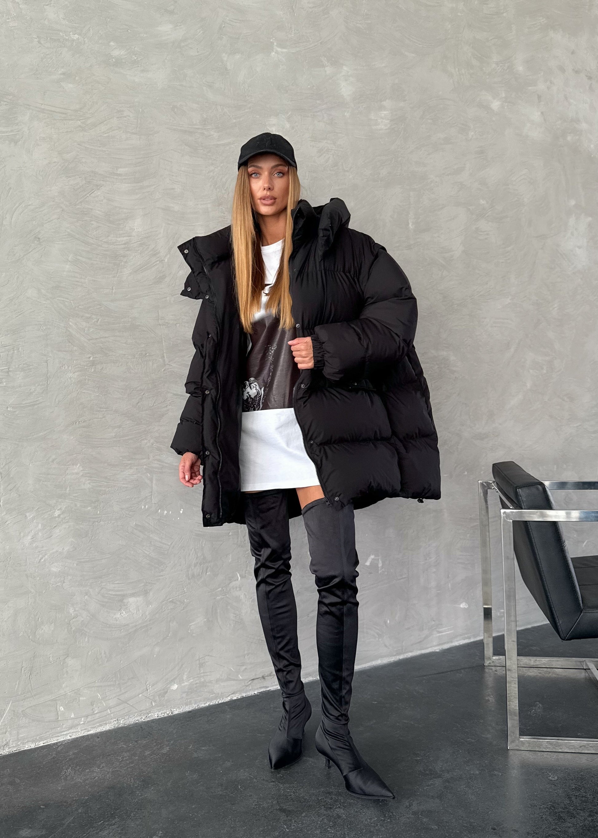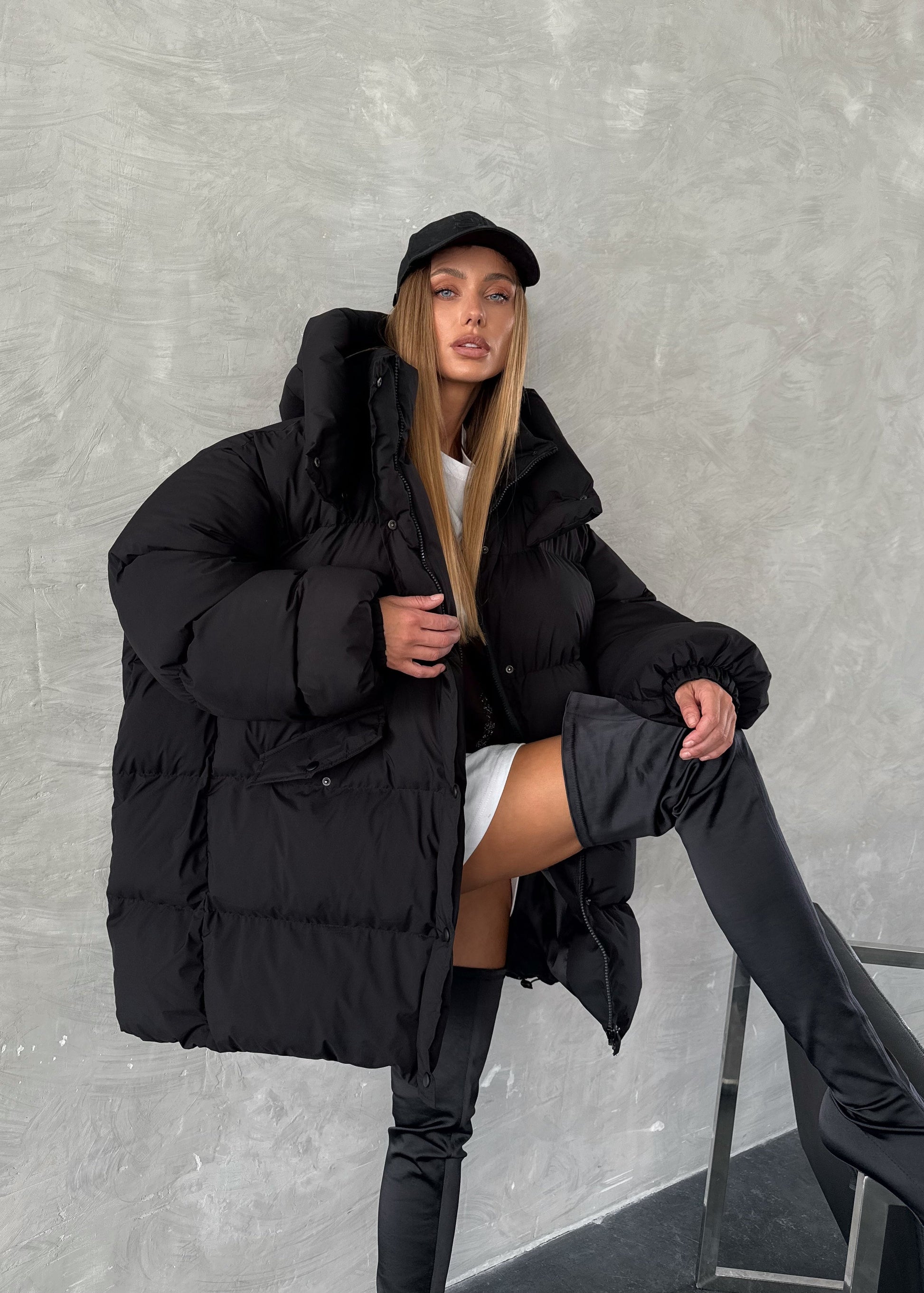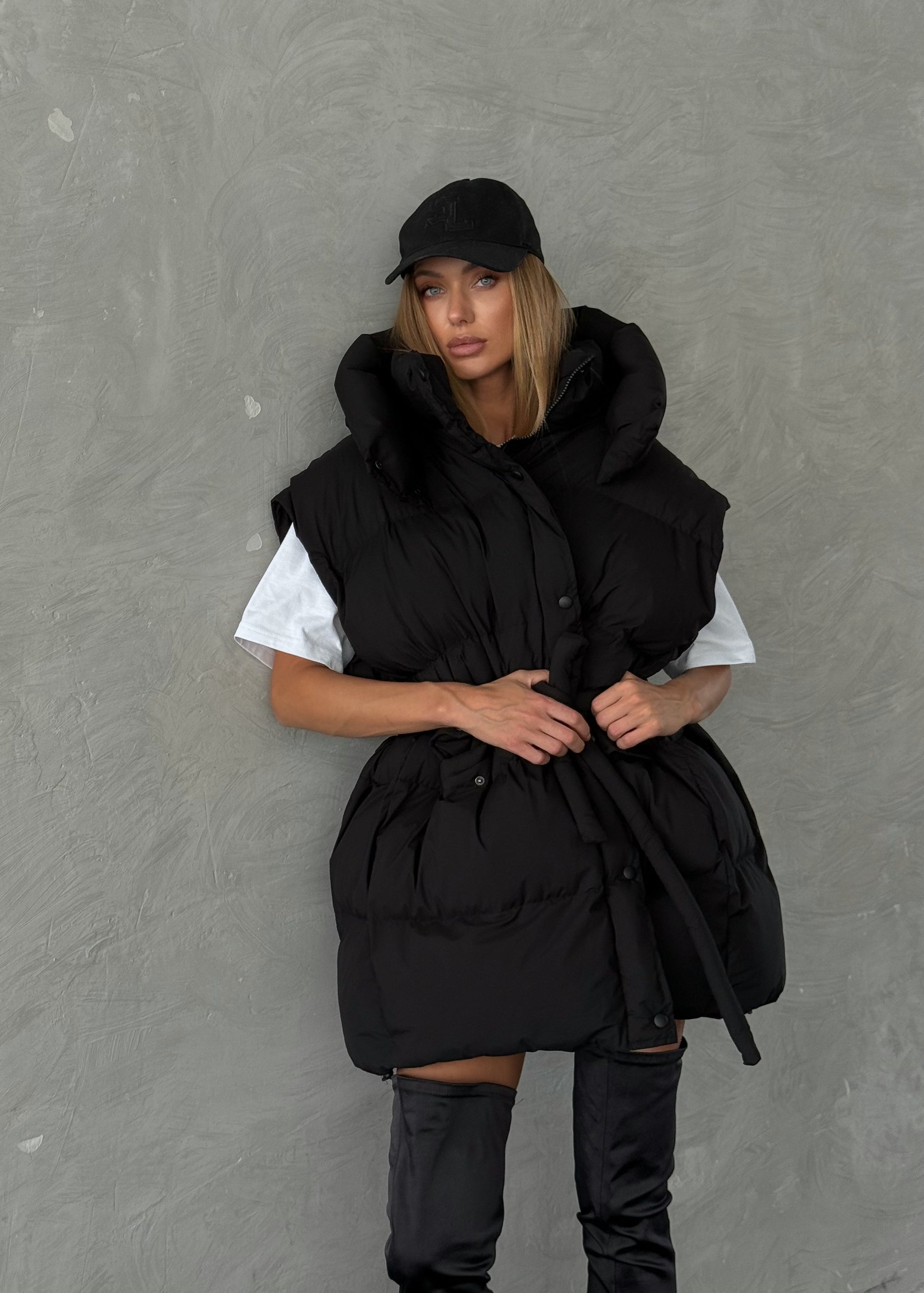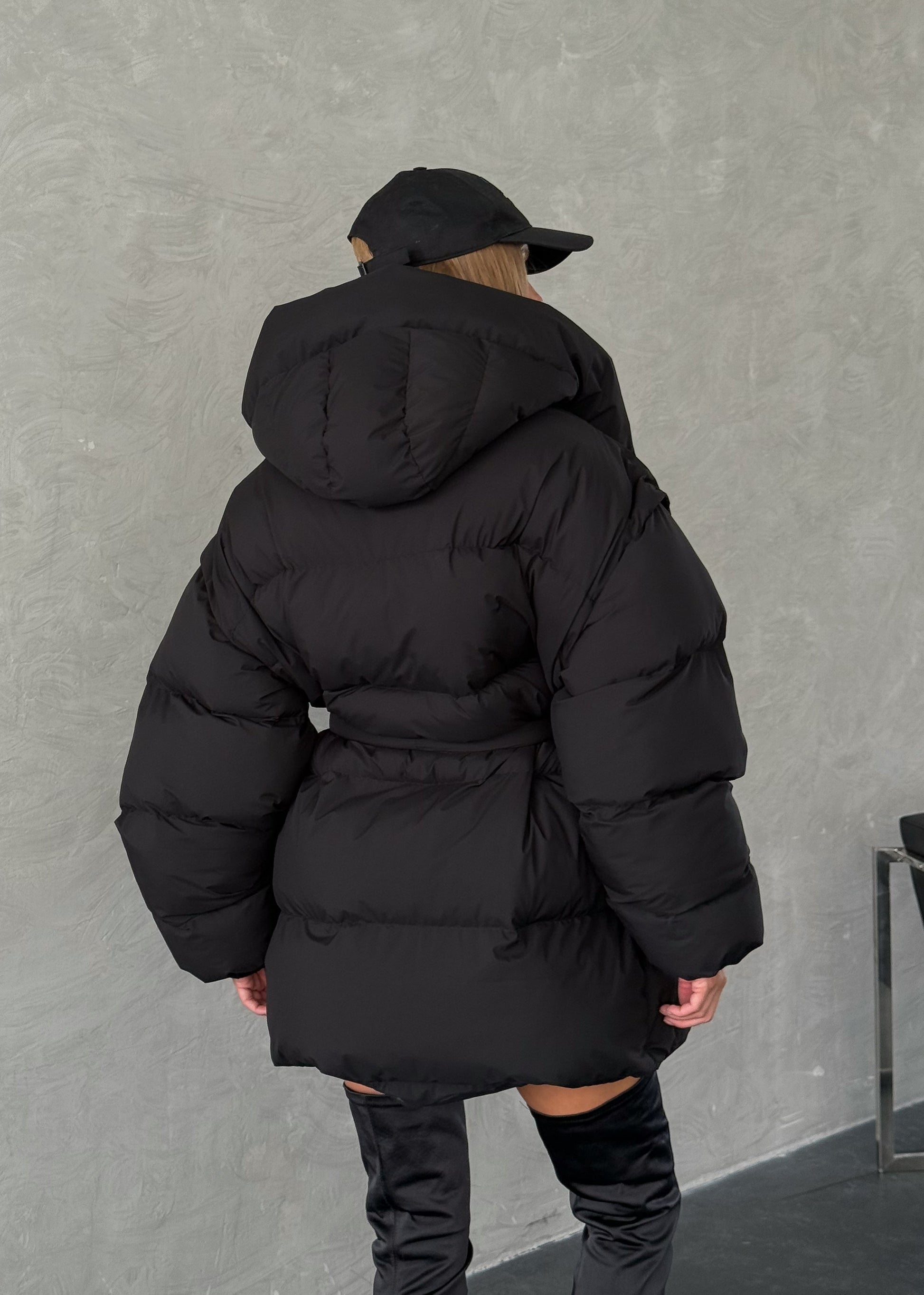 Модель має дві функціональні кишені, куліску по низу для регулювання об’єму та наповнювач еко-пух, який забезпечує легкість, тепло та збереження форми.