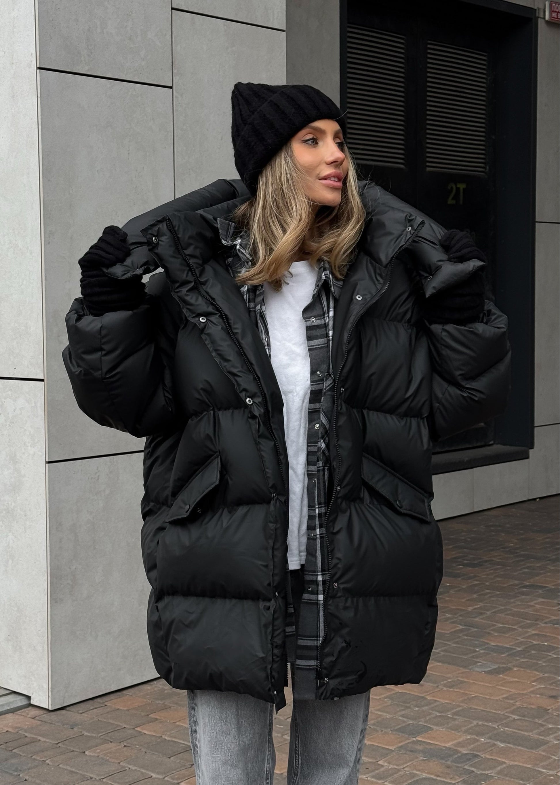 Модель має дві функціональні кишені, куліску по низу для регулювання об’єму та наповнювач еко-пух, який забезпечує легкість, тепло та збереження форми.
