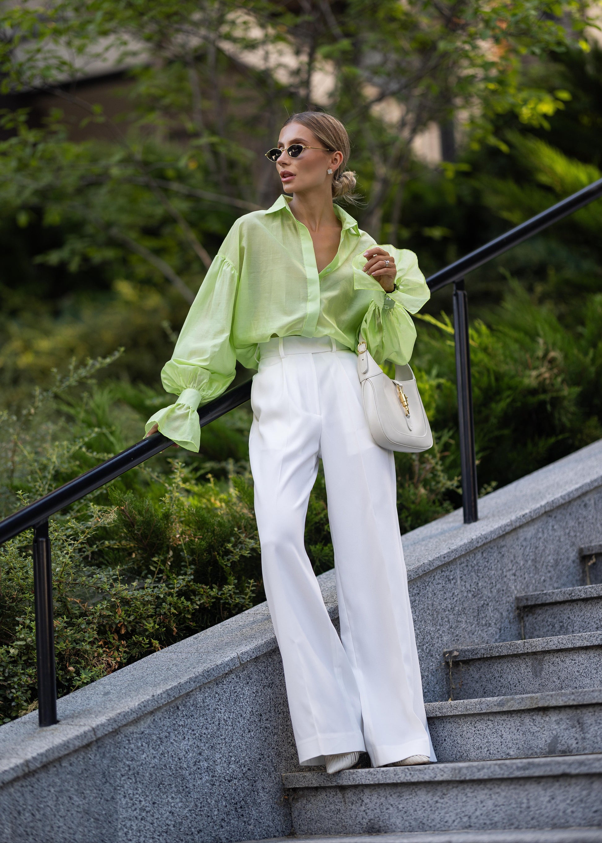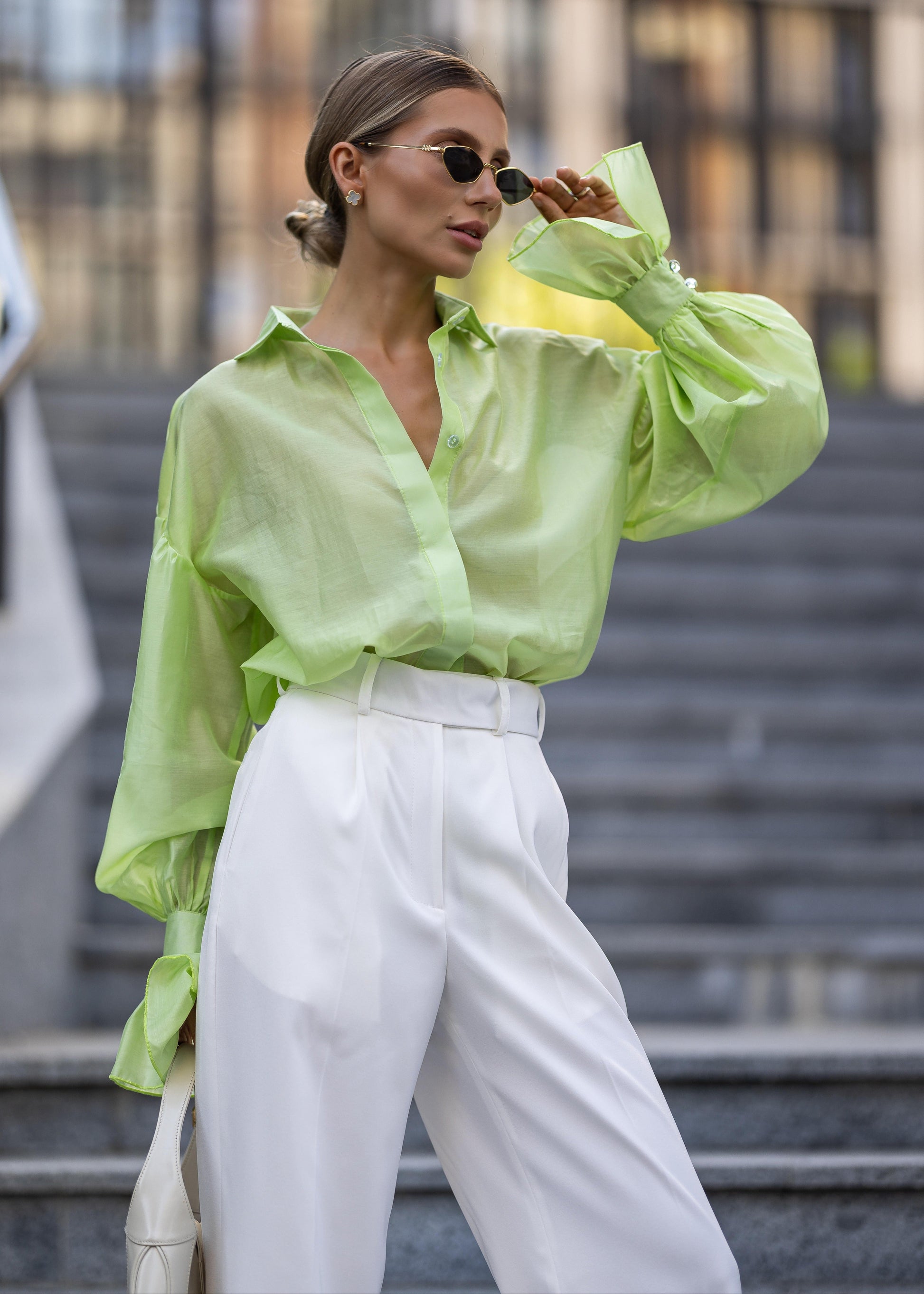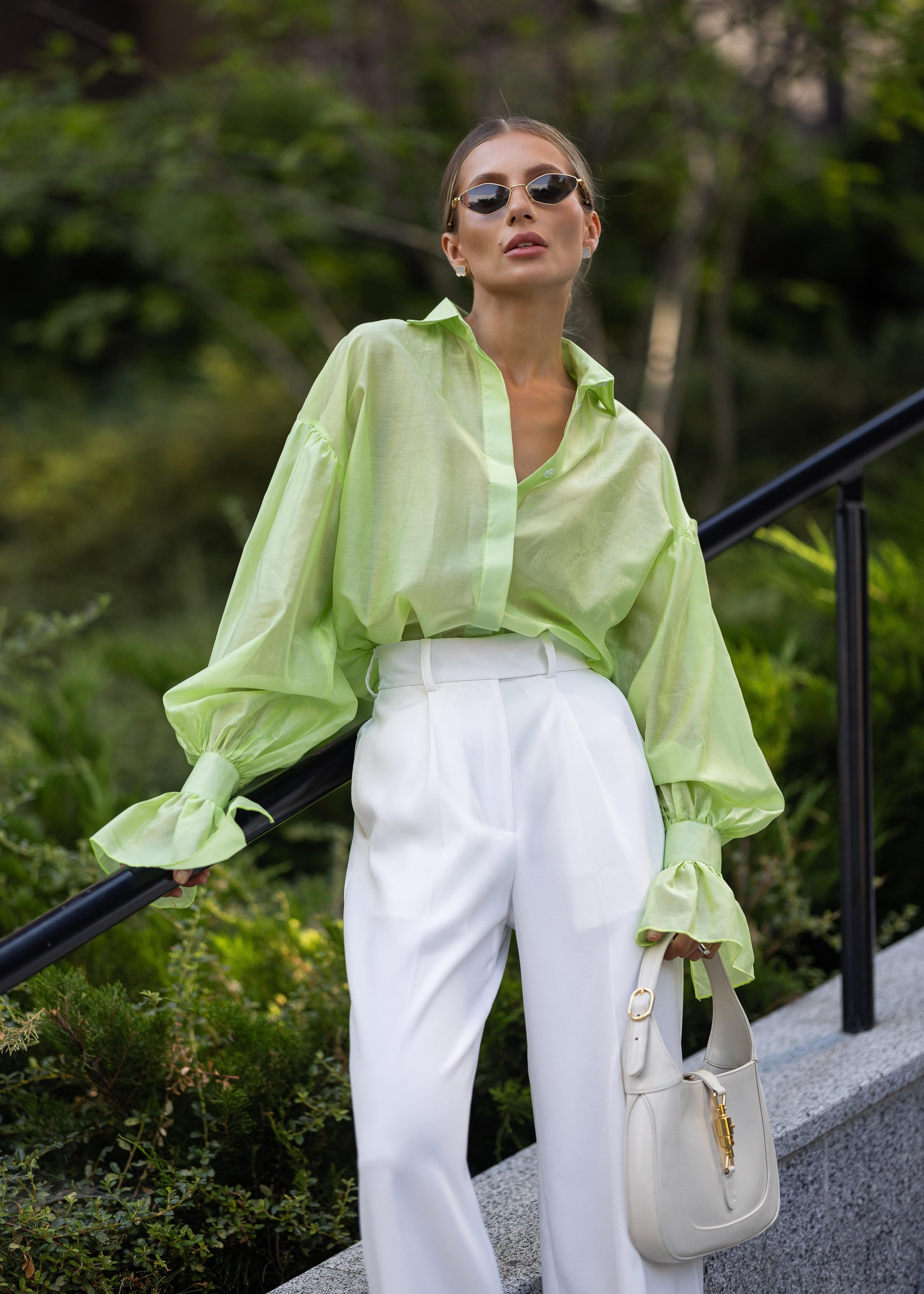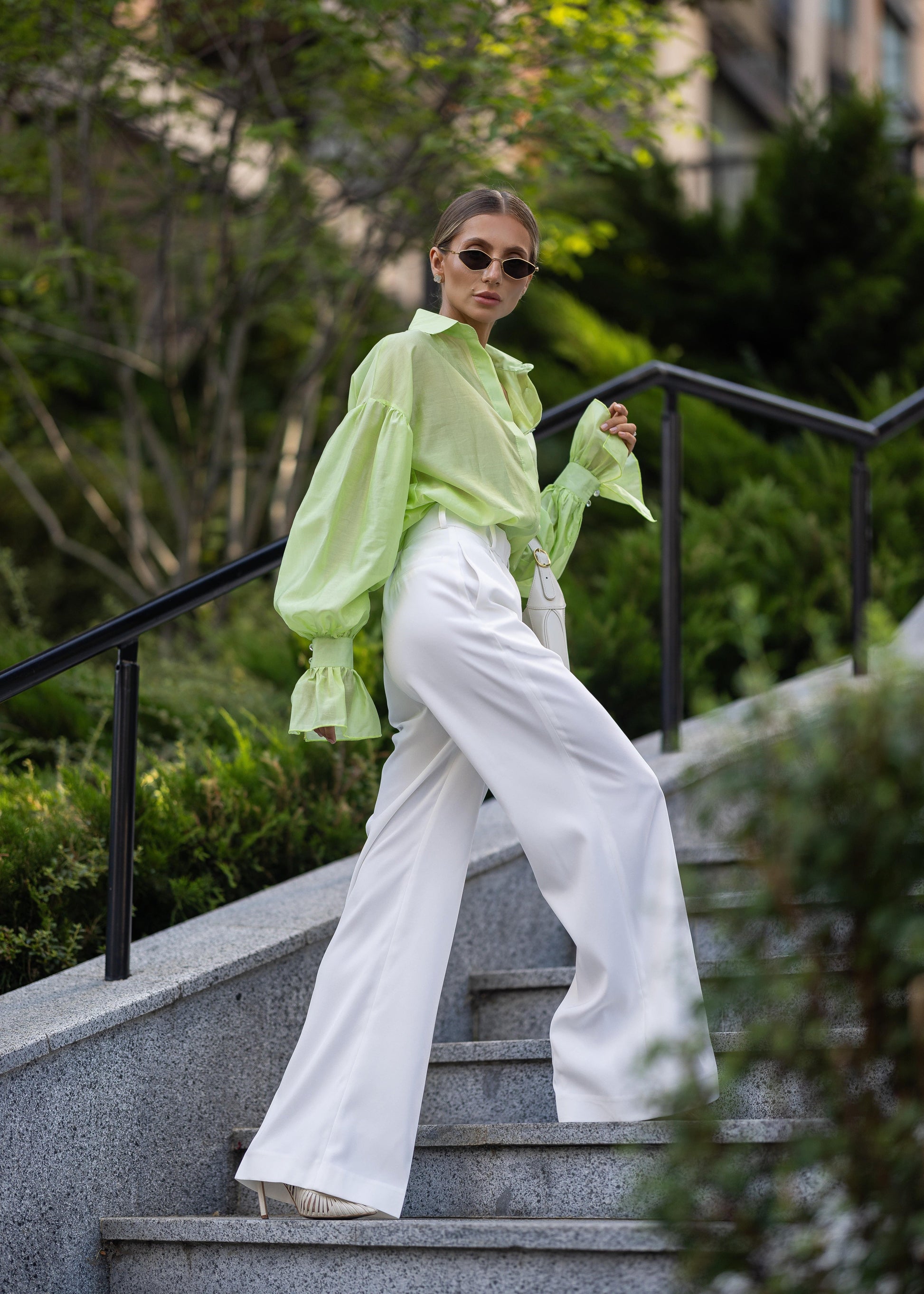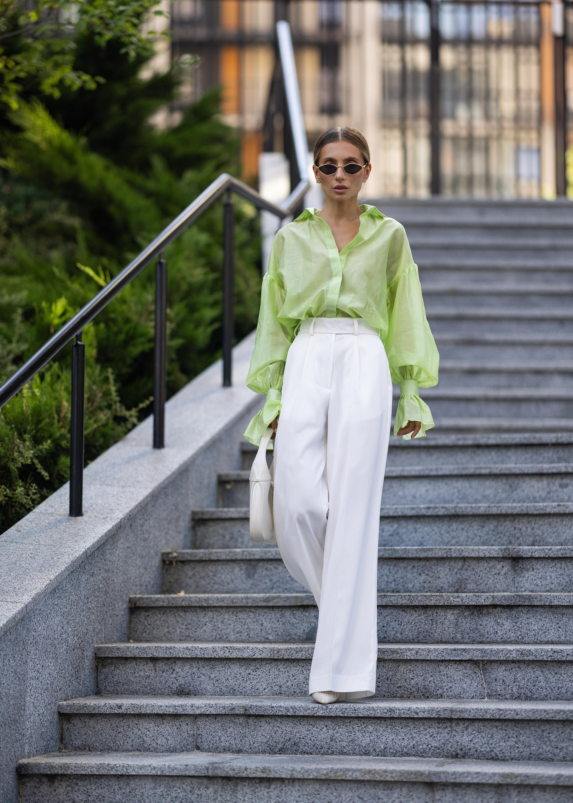 Висока талія, прямий силует, м’який рух тканини — усе працює на витончену вертикаль. Пасують до базових топів, сорочок або жакетів в тон.