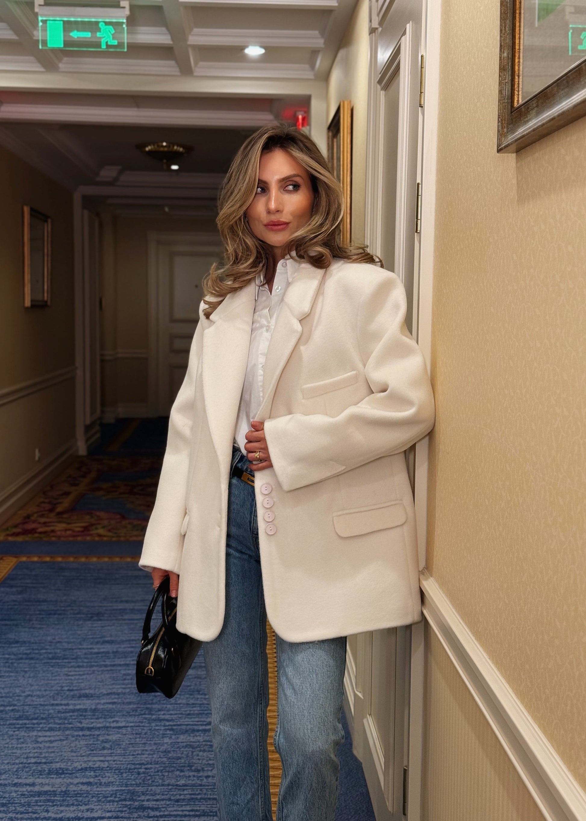 Жакет-пальто у ніжному рожевому відтінку, виконане з костюмної тканини преміум якості. Подовжений силует і лаконічний крій створюють сучасний акцент у гардеробі. Легка елегантність поєднується з практичністю — модель легко інтегрується у щоденні та святкові образи.