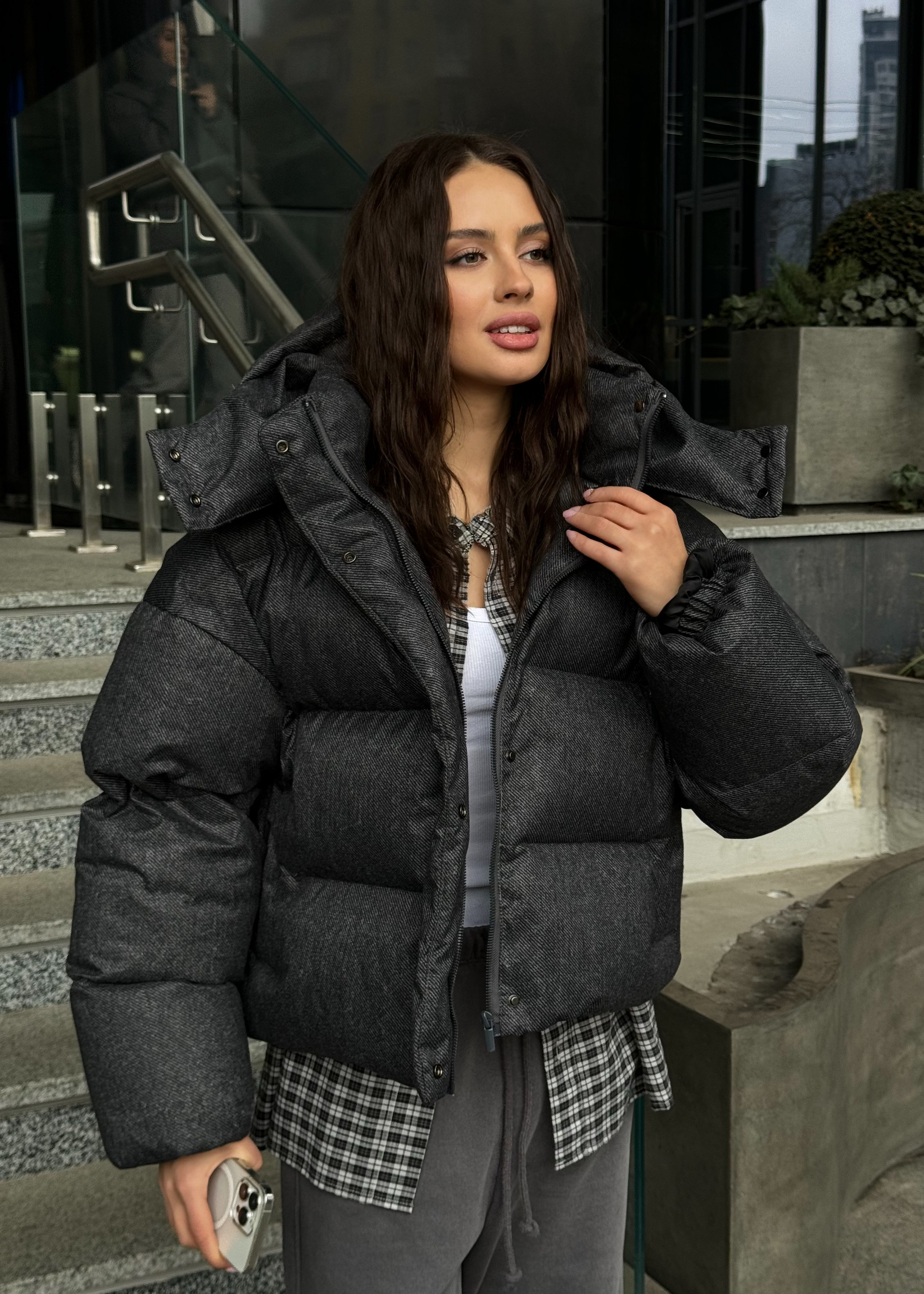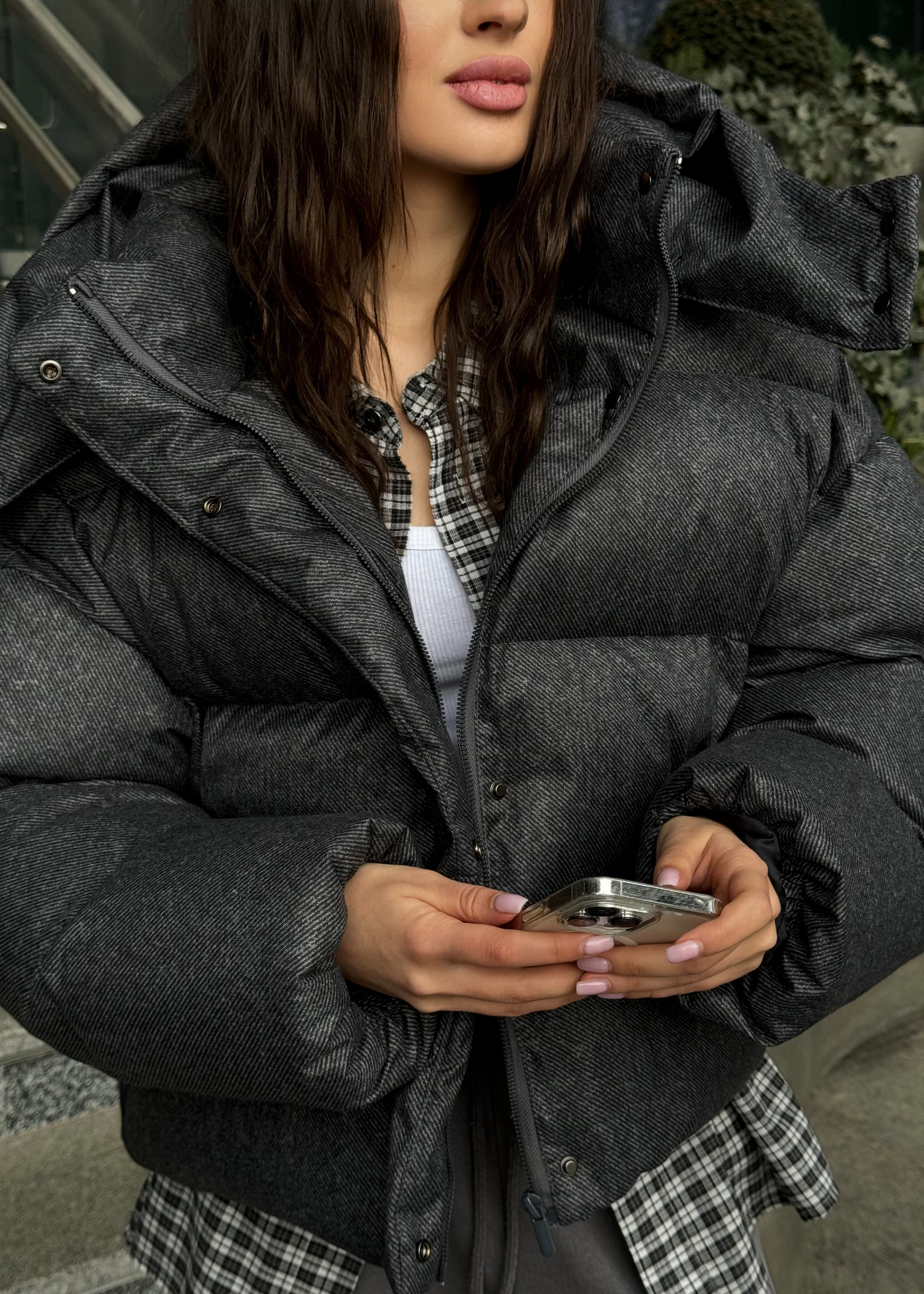 Сучасна модель пуферу з біопухом, яка поєднує комфорт і функціональність. Виконаний із якісної водовідштовхувальної матової плащівки на мембранній основі. Має застібку на блискавці та кнопках, регулюється знизу гумкою для кращої посадки. Два зовнішні та два внутрішні кишені забезпечують практичність. Знімний капюшон на кнопках і манжети-резинки на рукавах захищають від холоду та вітру.