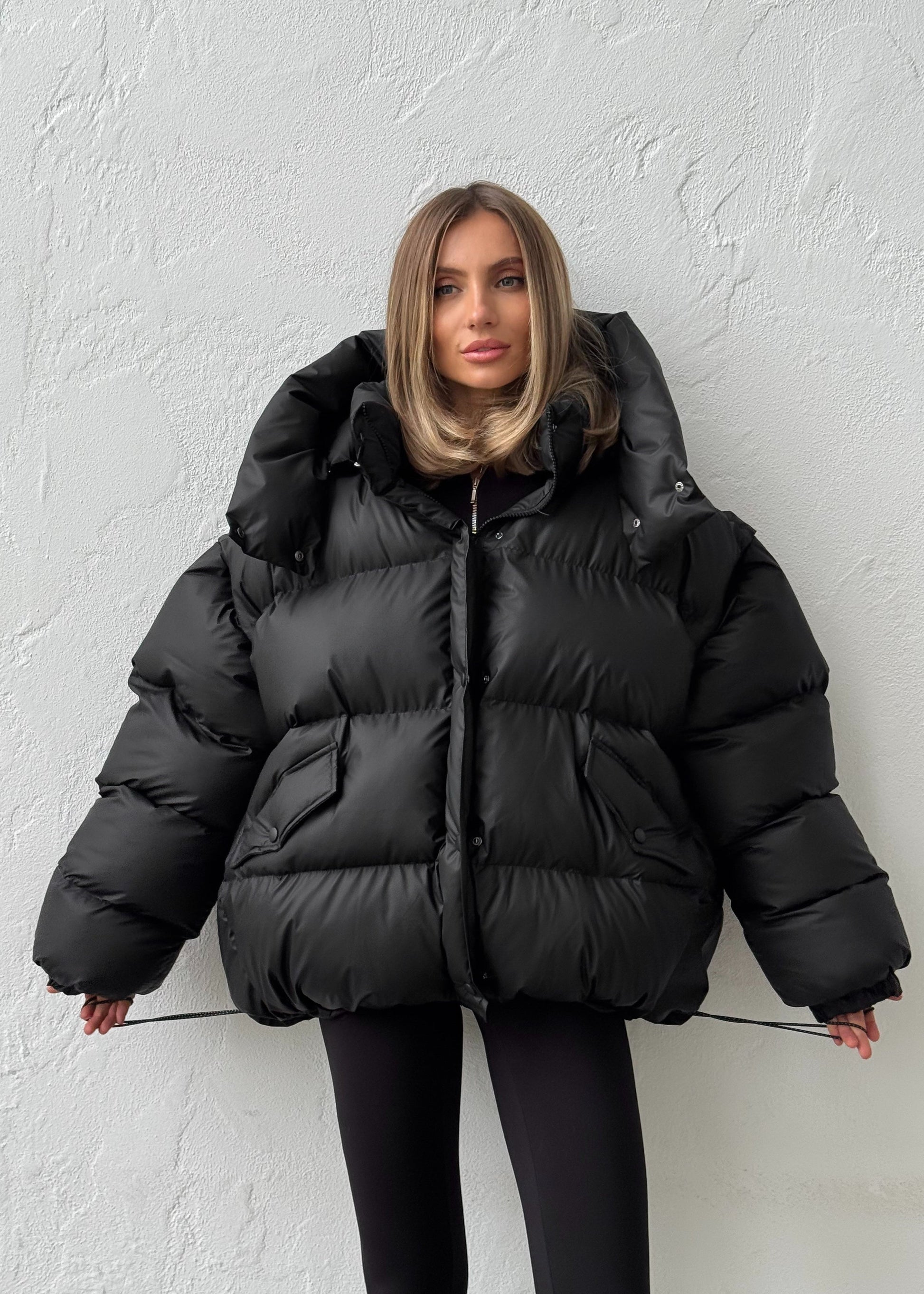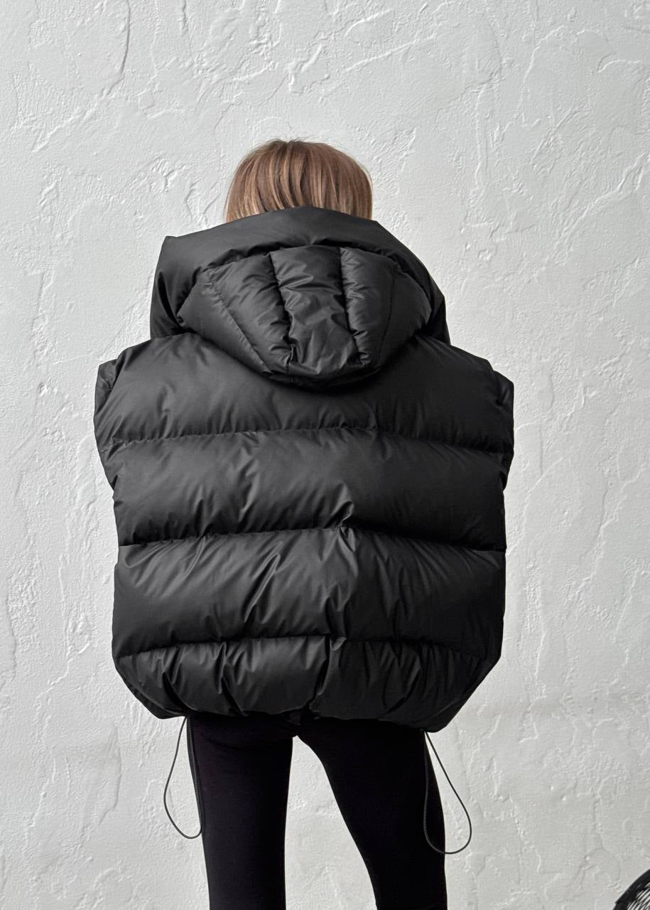 Модель має дві функціональні кишені, куліску по низу для регулювання об’єму та наповнювач еко-пух, який забезпечує легкість, тепло та збереження форми.