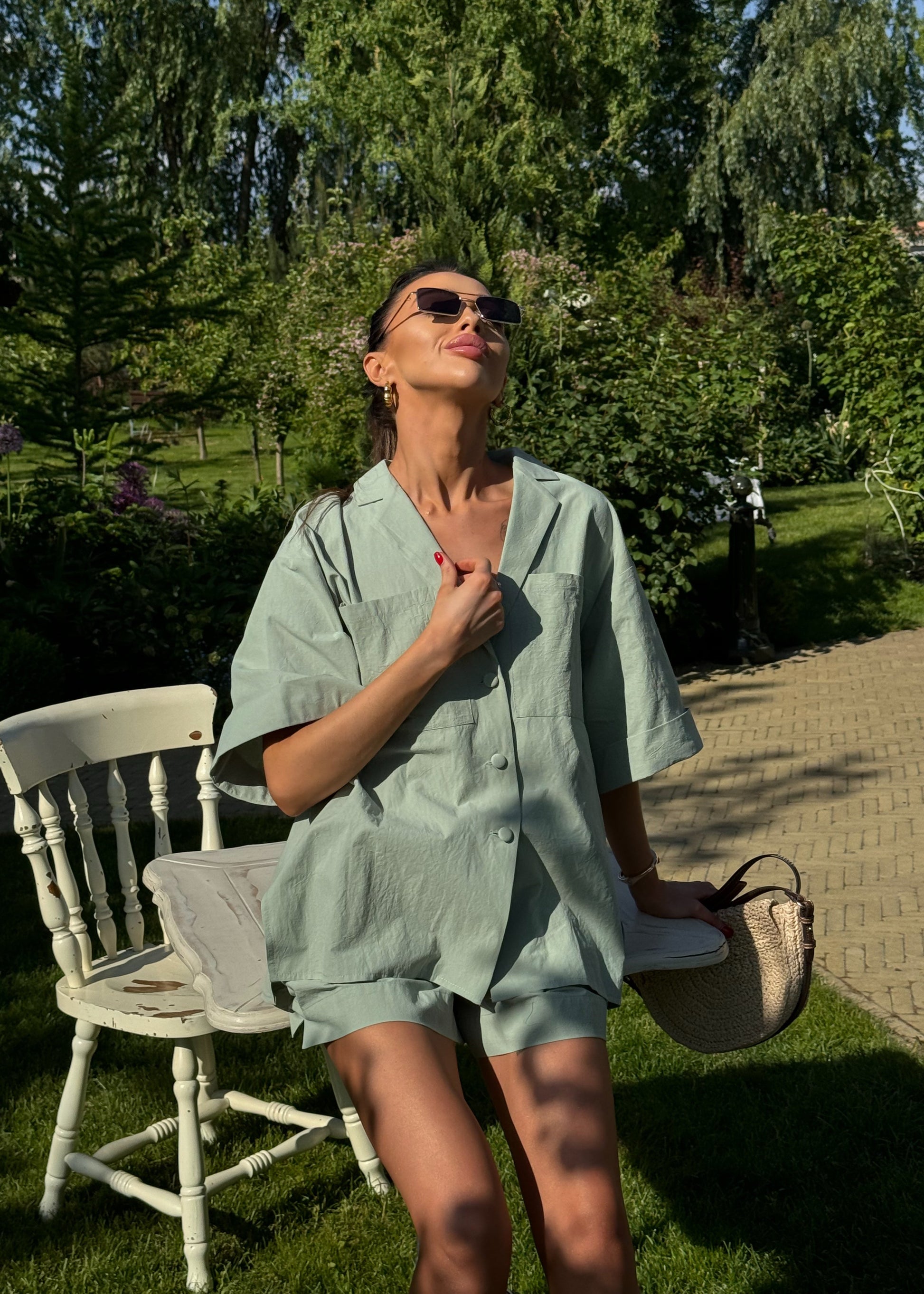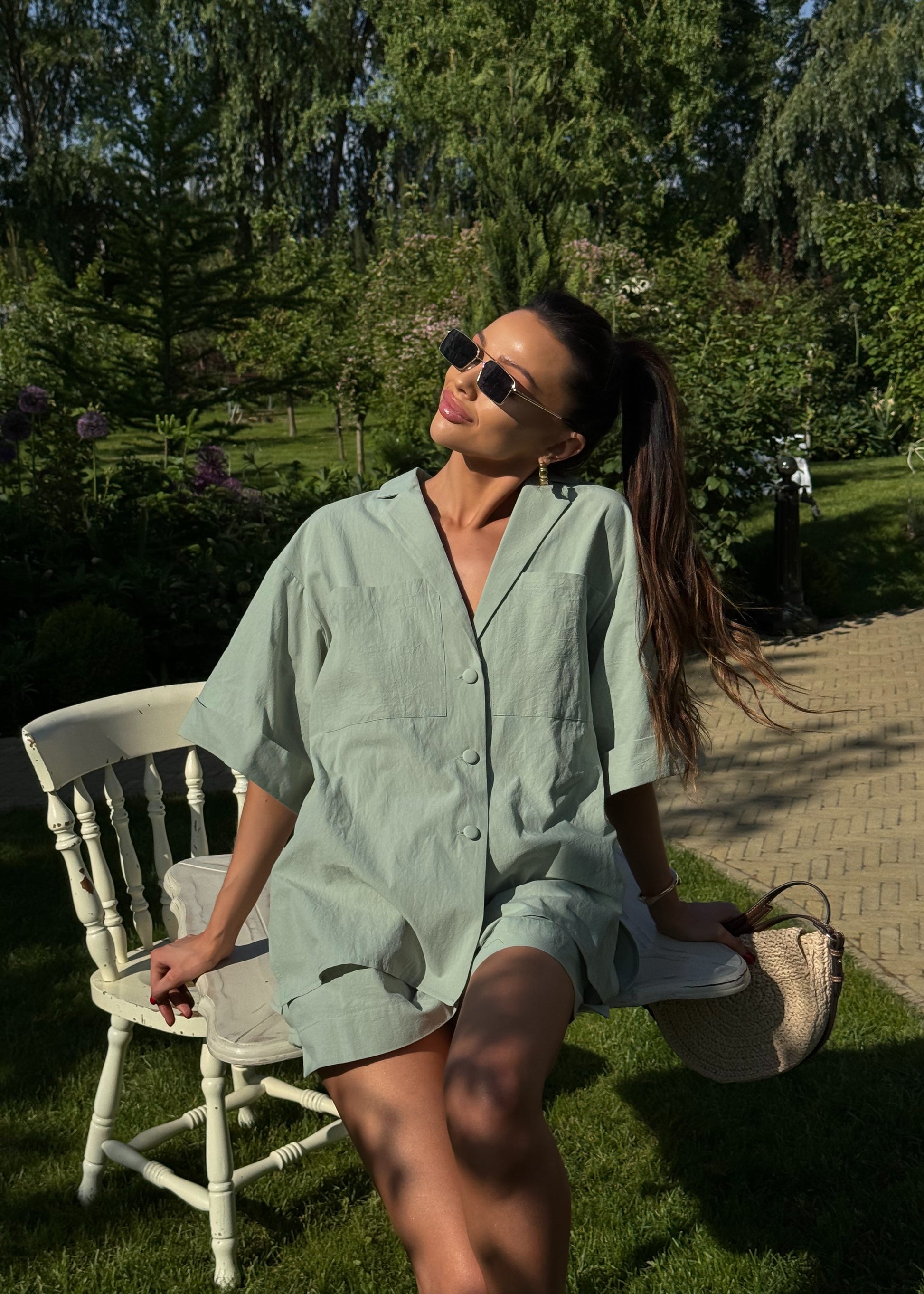 Сет із вільної сорочки та шорт в оливковому відтінку