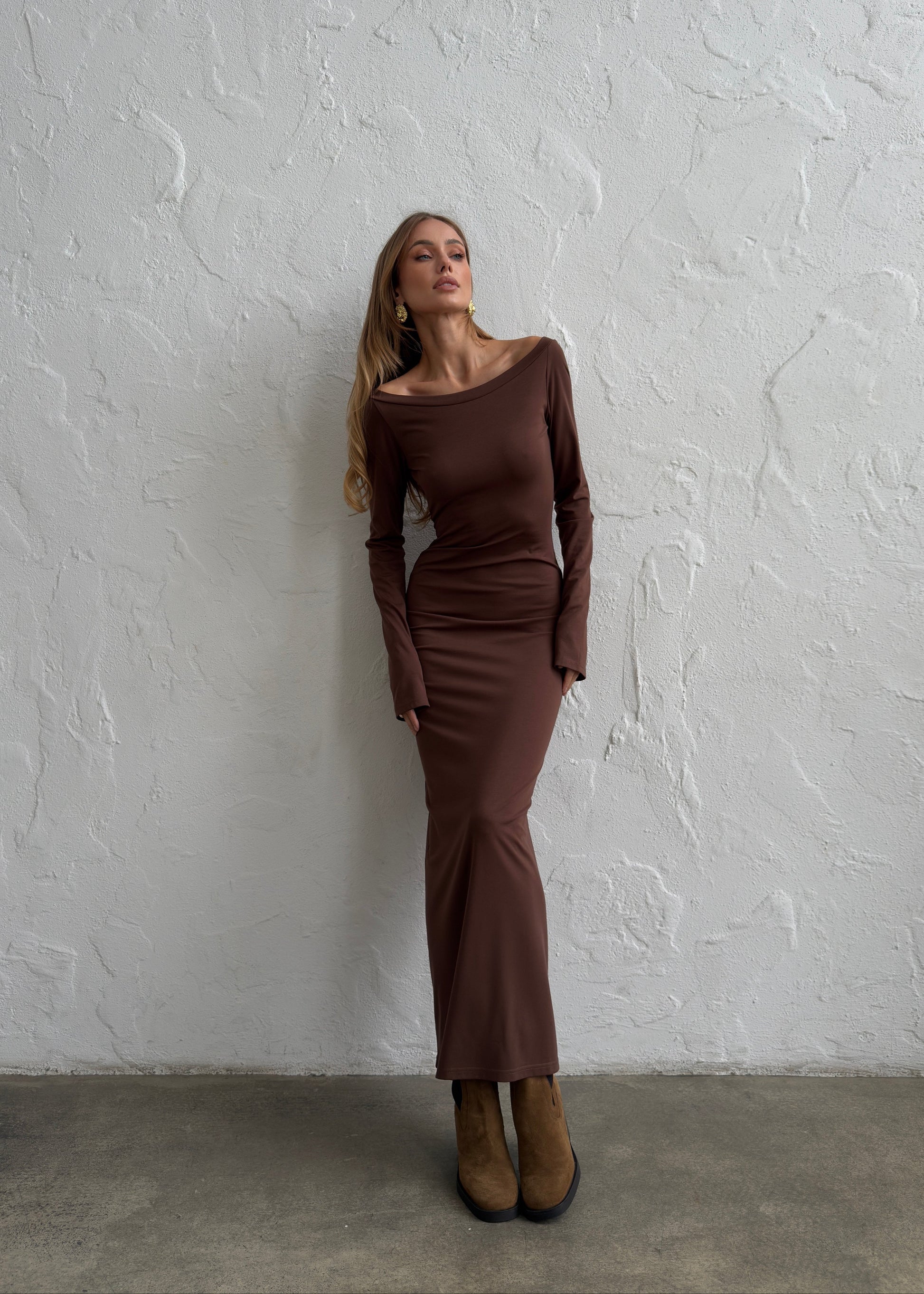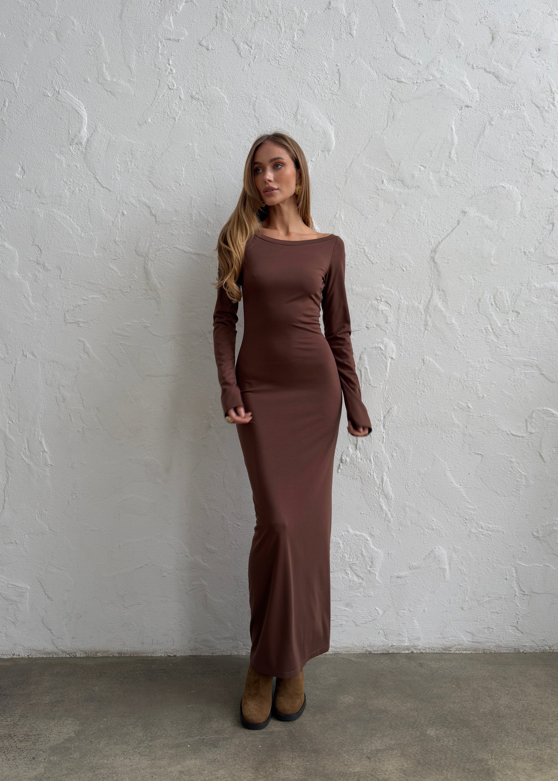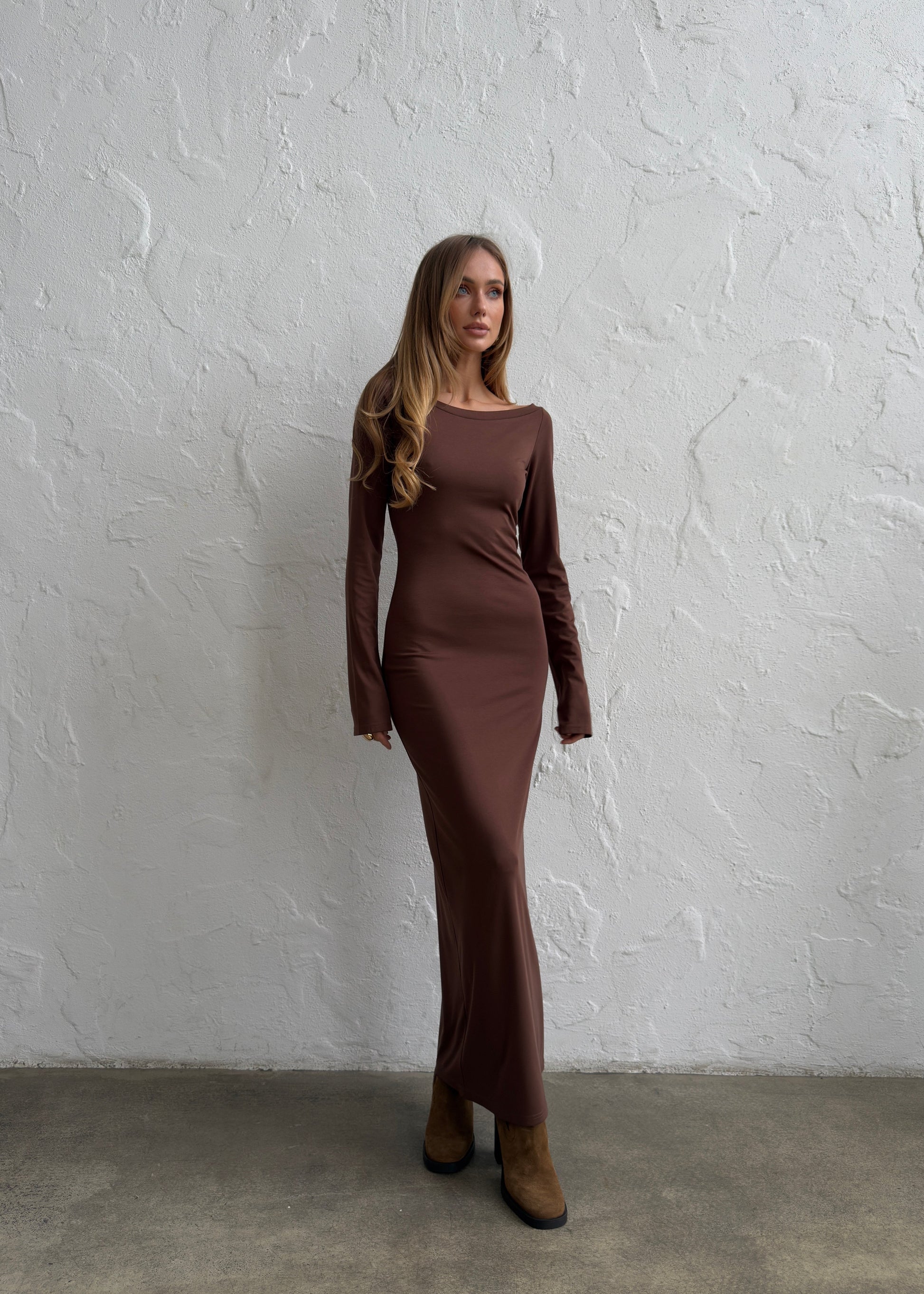 Лаконічна чорна сукня, що говорить мовою тиші та впевненості. Силует, який огортає фігуру, підкреслює природну жіночність, а відкрита спинка додає інтриги та делікатної чуттєвості. Витончені лінії крою й довжина в підлогу створюють образ, сповнений спокою та сили — ідеальний вибір для вечора, коли головний акцент має бути на вас.