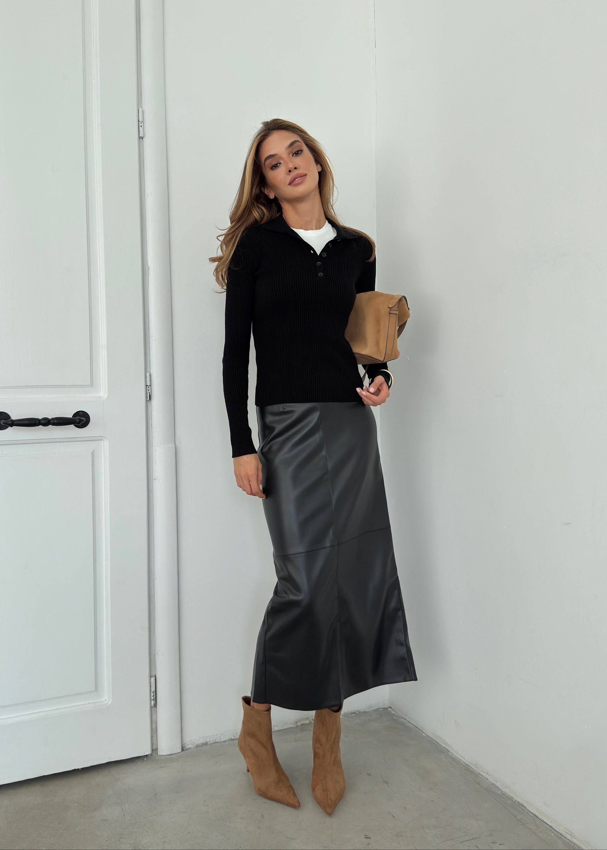 Шкіряна спідниця міді — елегантний акцент сучасного гардеробу.