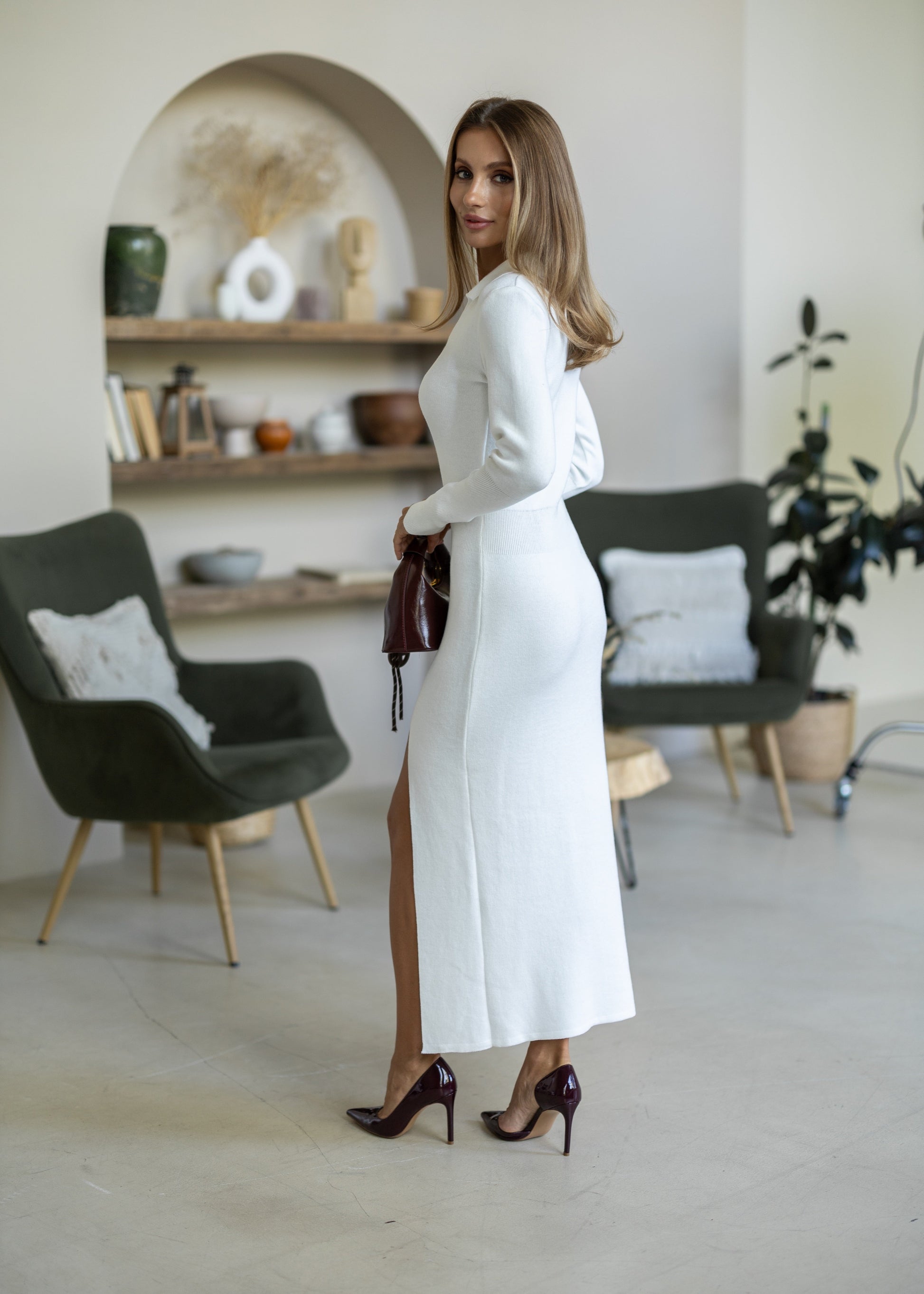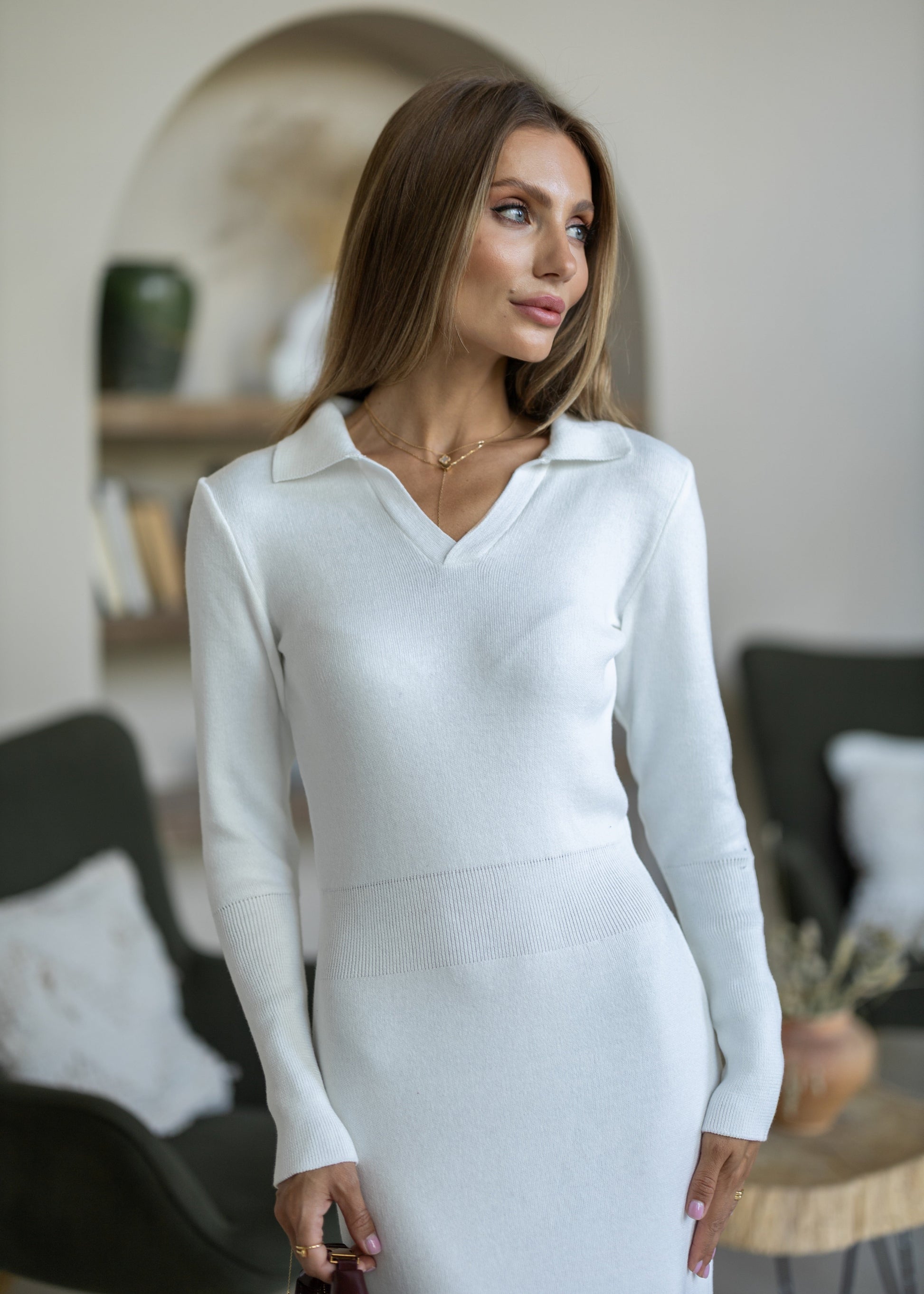 Лаконічна і жіночна сукня з м'якого бавовняного трикотажу з виразним коміром у стилі поло. Акуратний розріз додає легкості руху та робить силует більш витонченим. Матеріал комфортно прилягає до тіла, підкреслюючи природні лінії фігури та створюючи відчуття м'якості та затишку.