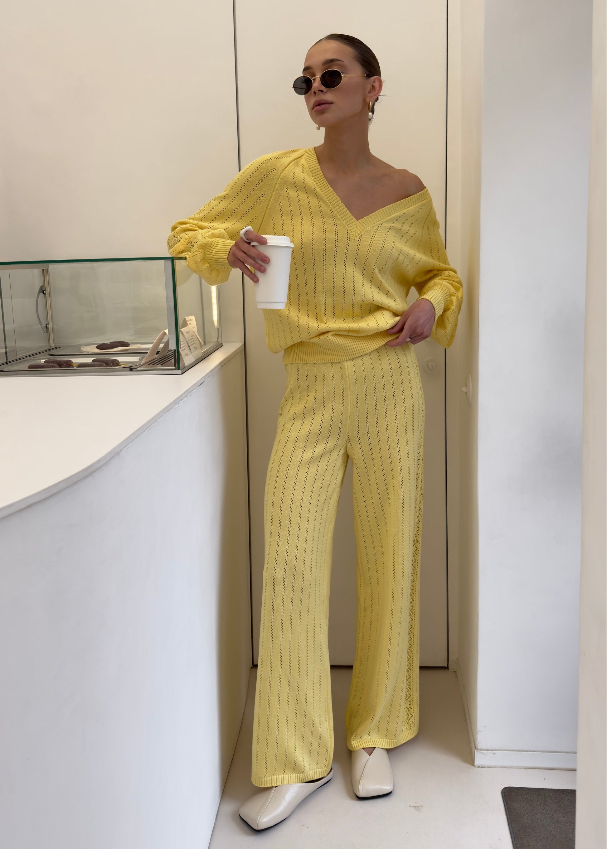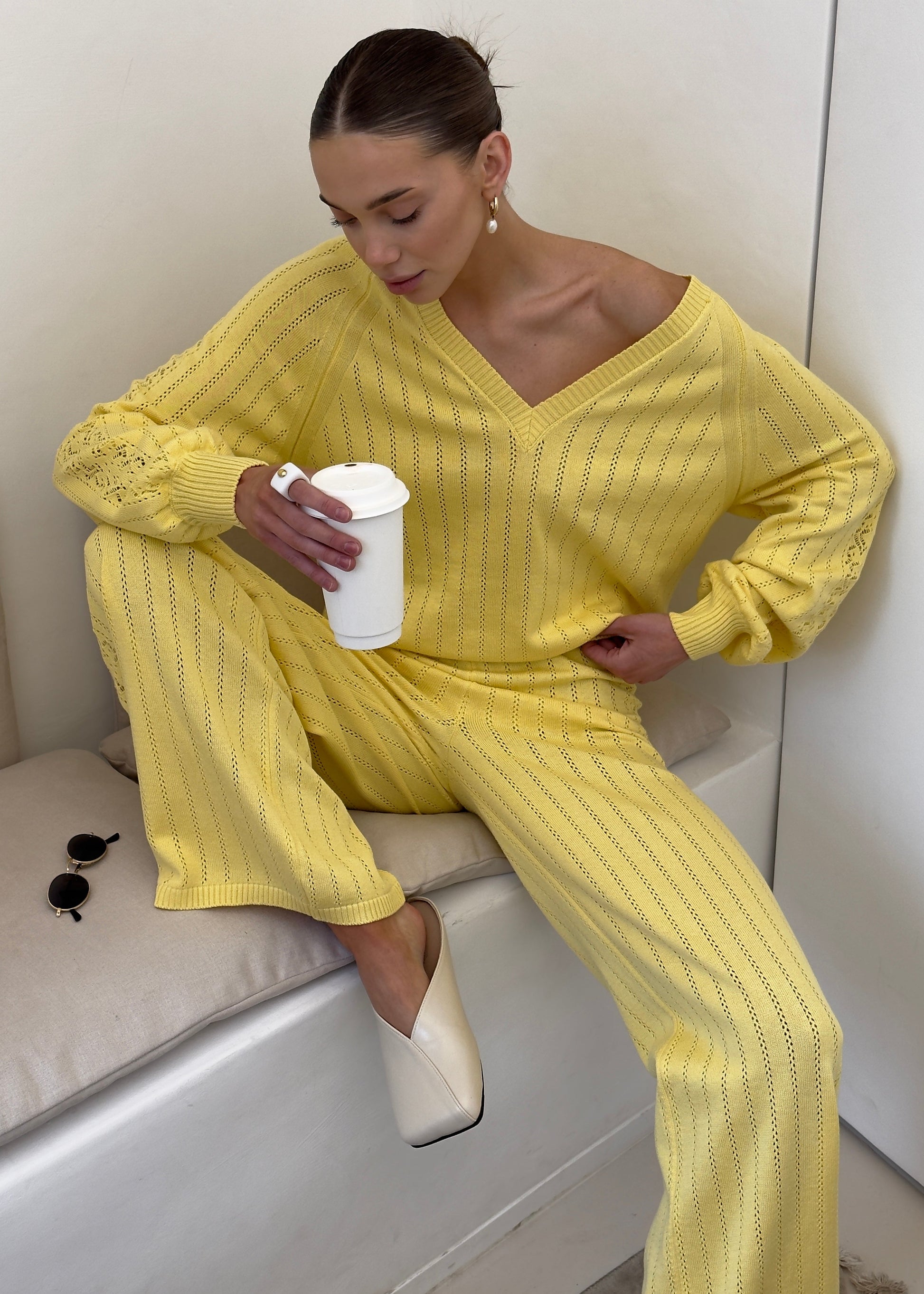 Стильний в’язаний костюм у мінімалістичному виконанні — ідеальний варіант для комфортних повсякденних образів. Складається з оверсайз светра і вільних брюк із середньою посадкою. М’який трикотаж приємний до тіла, добре тримає форму й не кошлатиться. Вільний крій забезпечує комфорт у русі, а стриманий дизайн легко поєднується з будь-яким верхнім одягом.