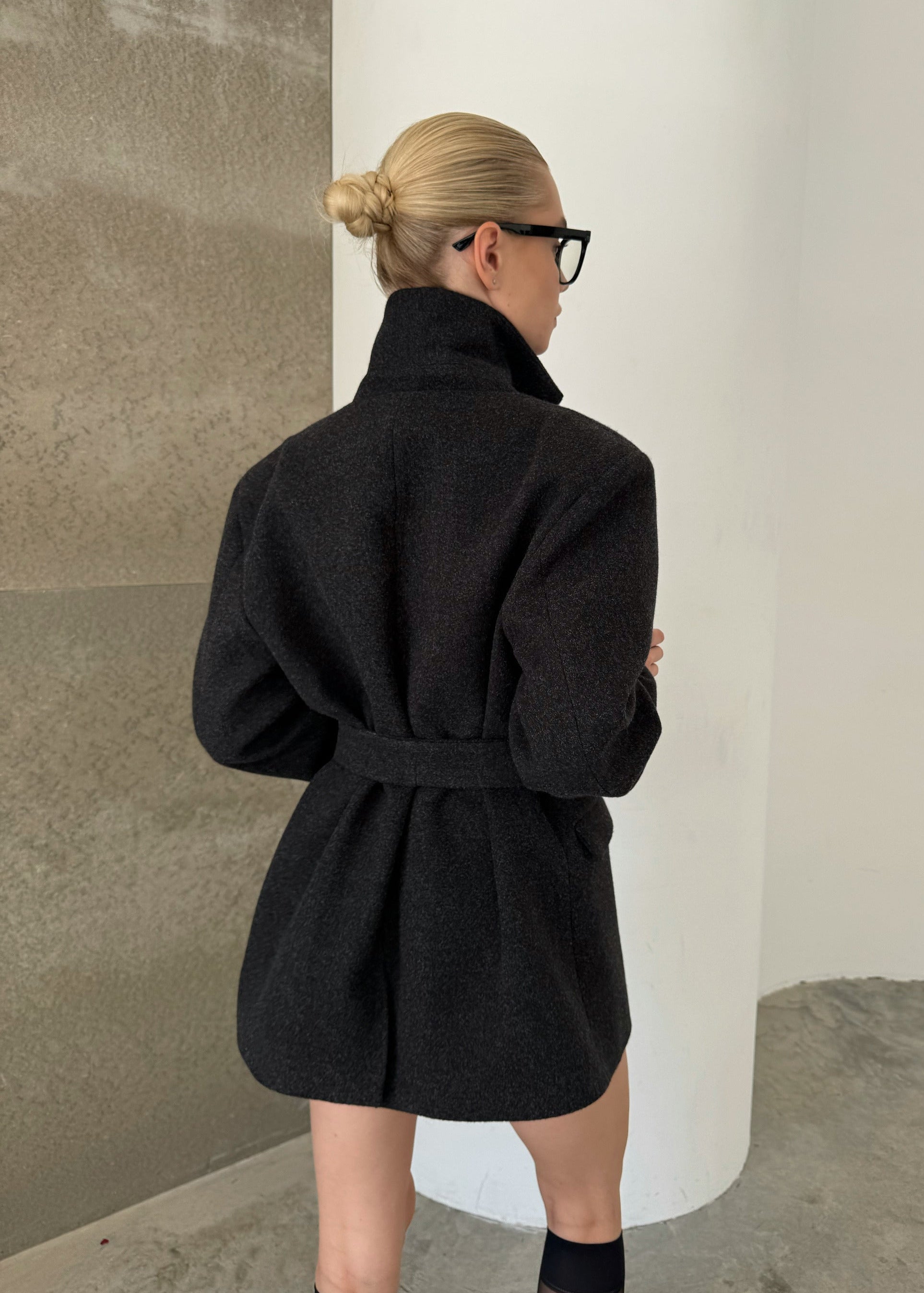 Укорочена модель класичного пальто — трендова альтернатива довгим силуетам. Виконане з дубльованої пальтової тканини із віскозною підкладкою, воно поєднує тепло, комфорт та стиль.